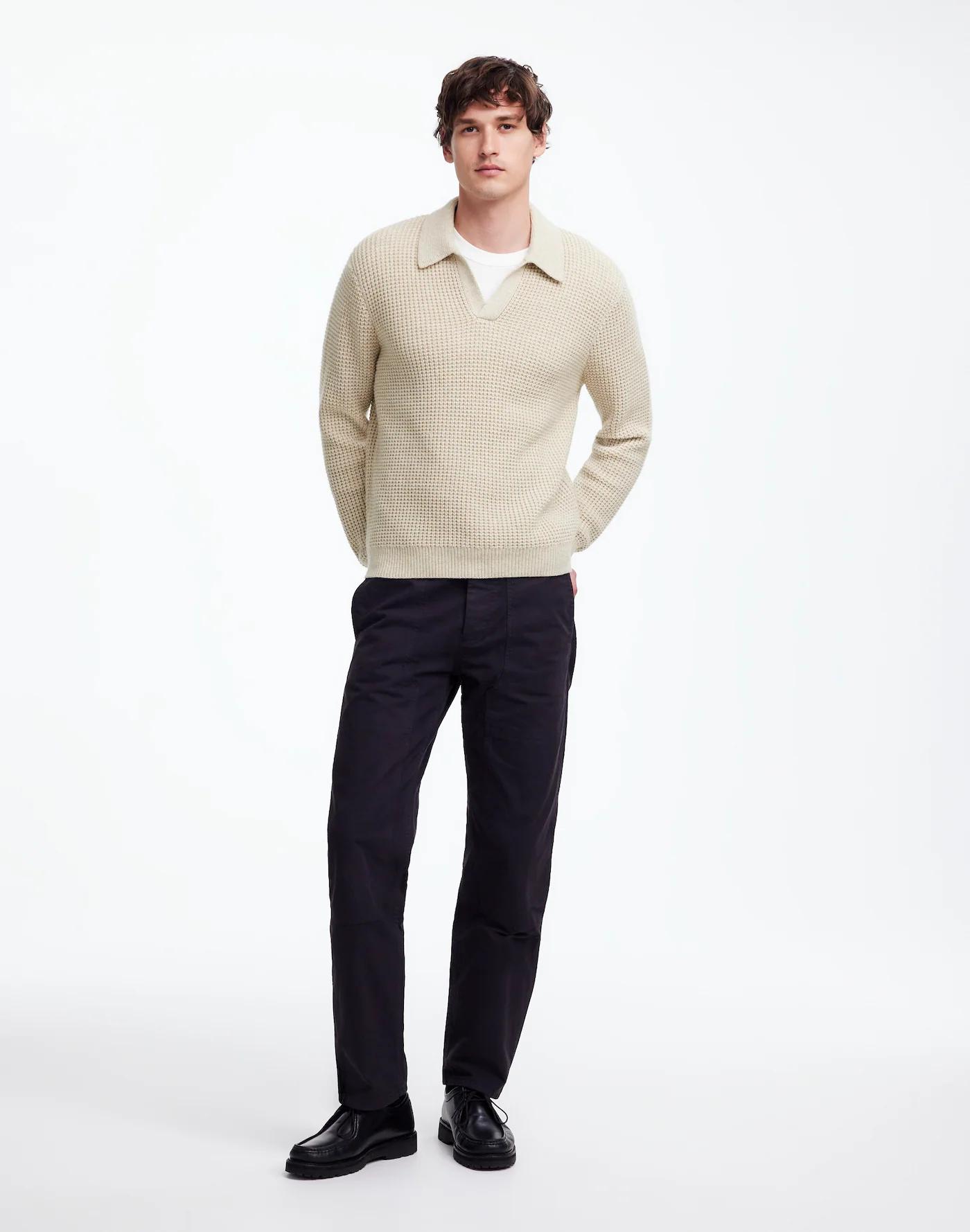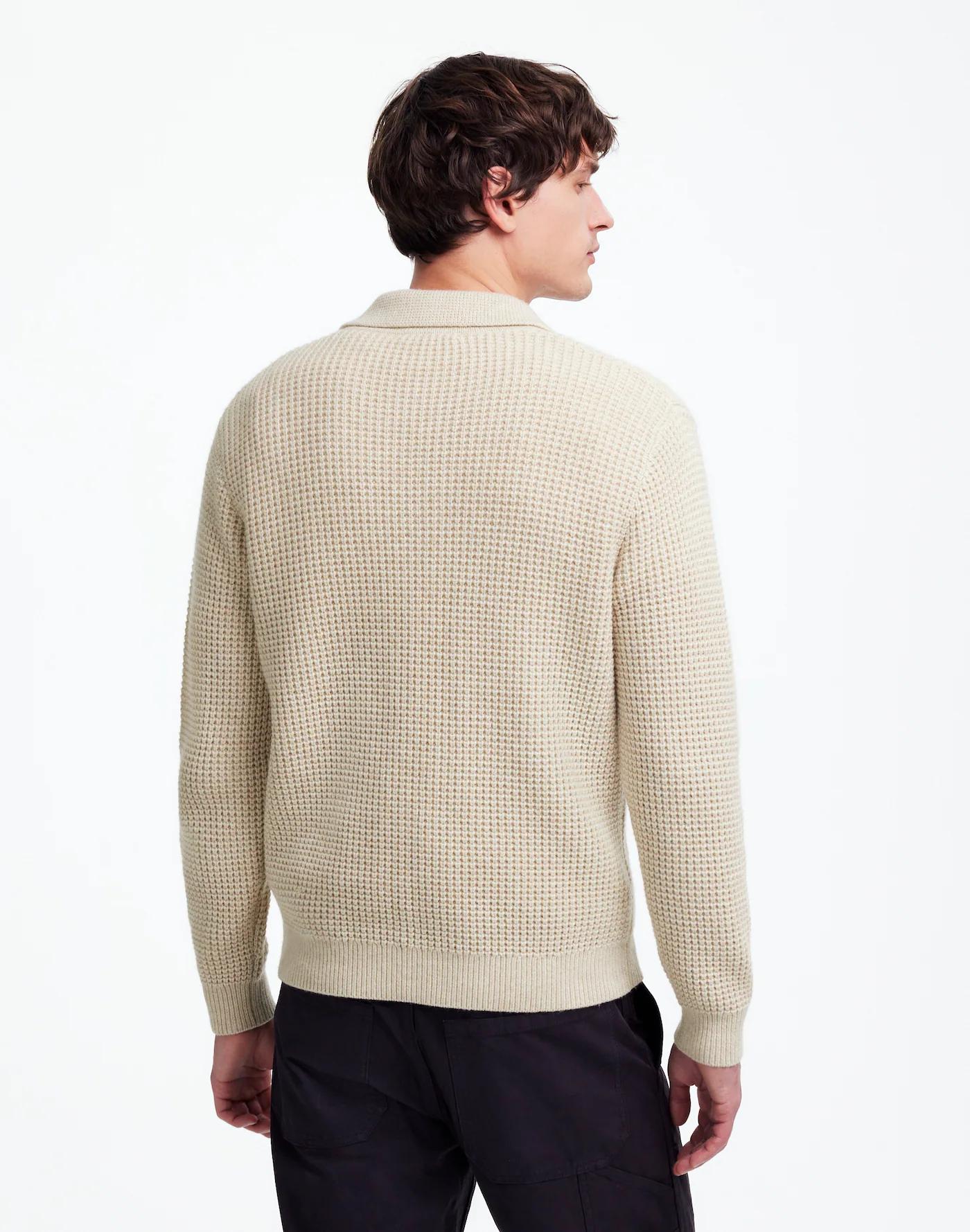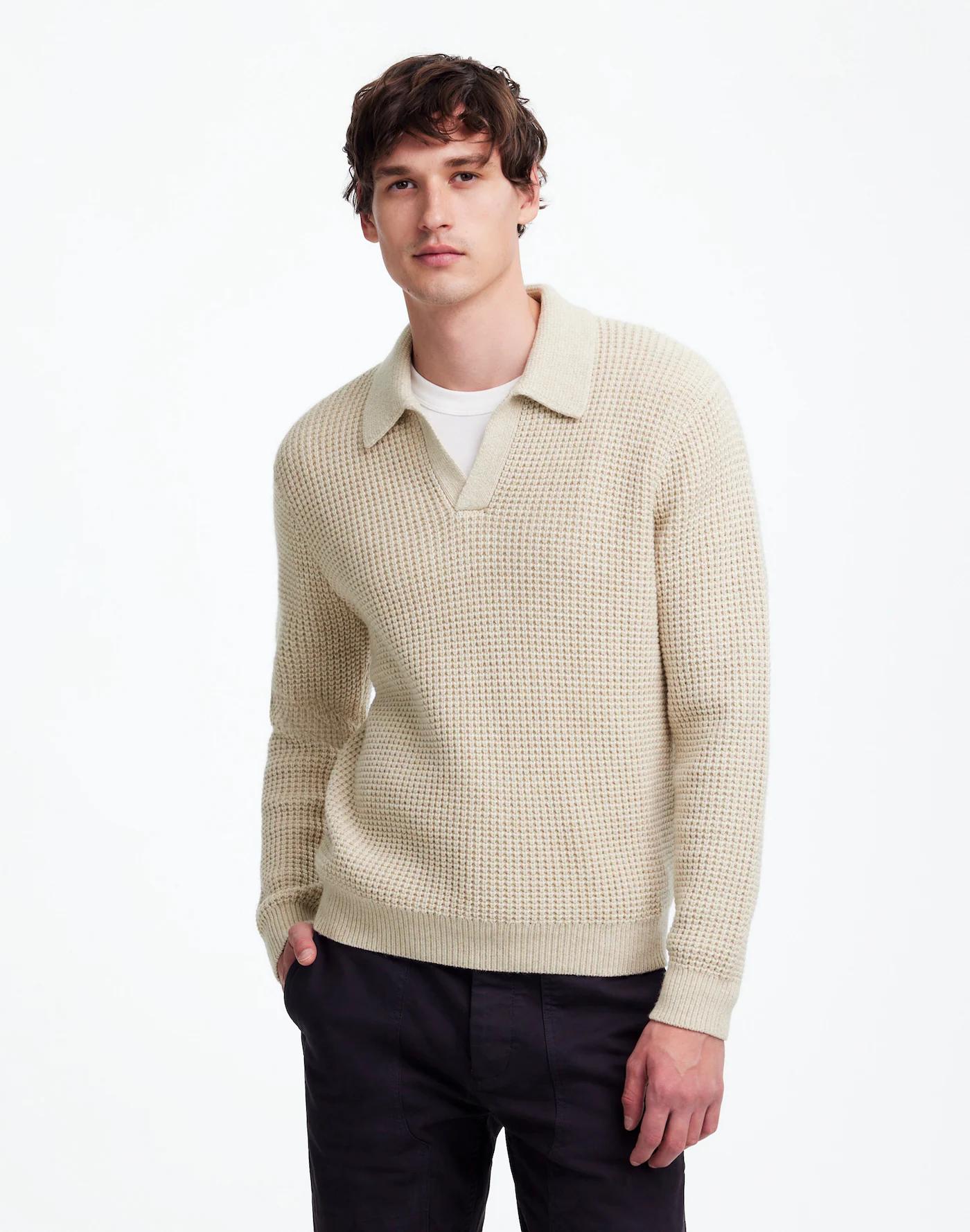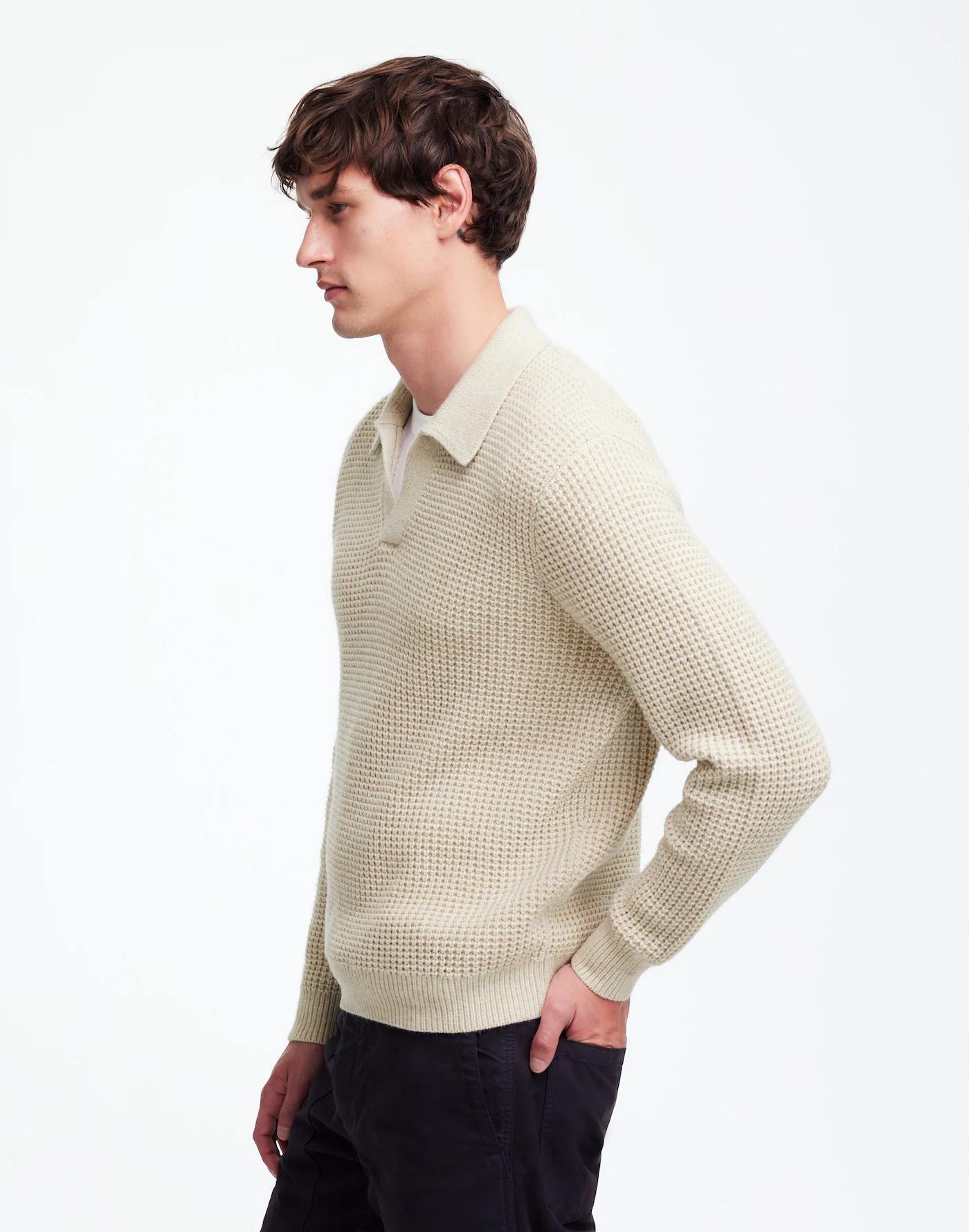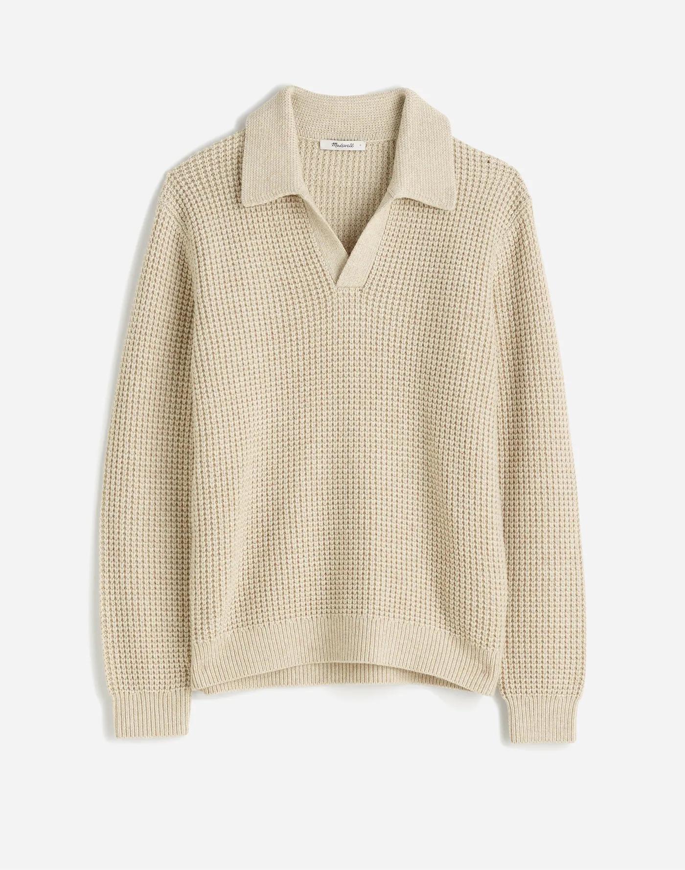 Johnny-Collar Sweater Polo Shirt in Waffle Knit