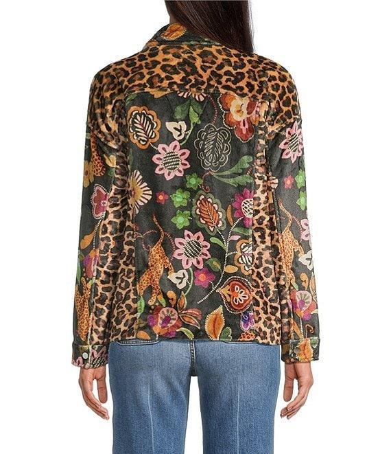 JOHNNY WAS Amelie Floral & Animal Print Sherpa Trucker Jacket