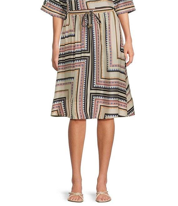 JOHNNY WAS Blythe Geometric Printed Silk Blend A-Line Coordinating Midi Skirt