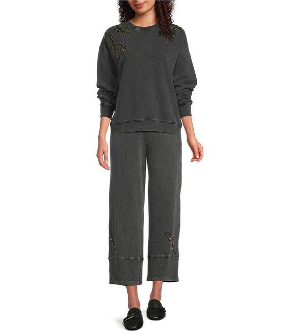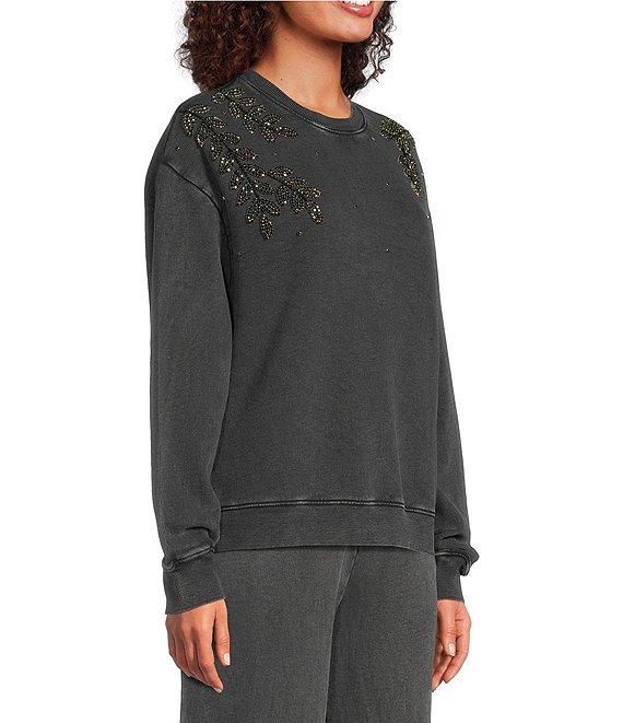 JOHNNY WAS Coordinating French Terry Beaded Crew Neck Long Sleeve Sweatshirt