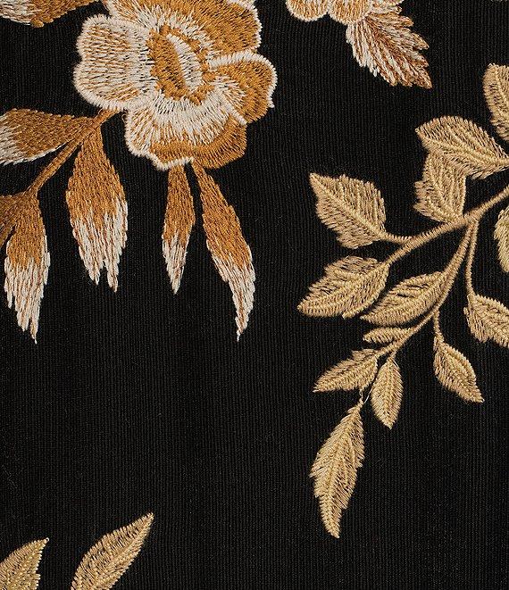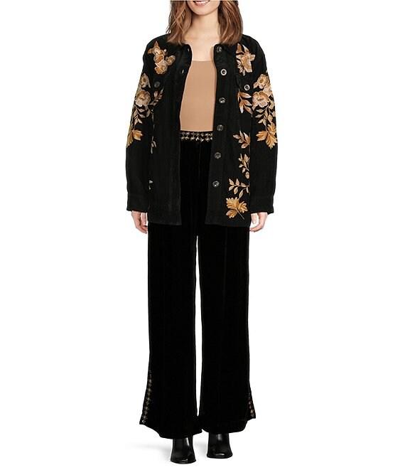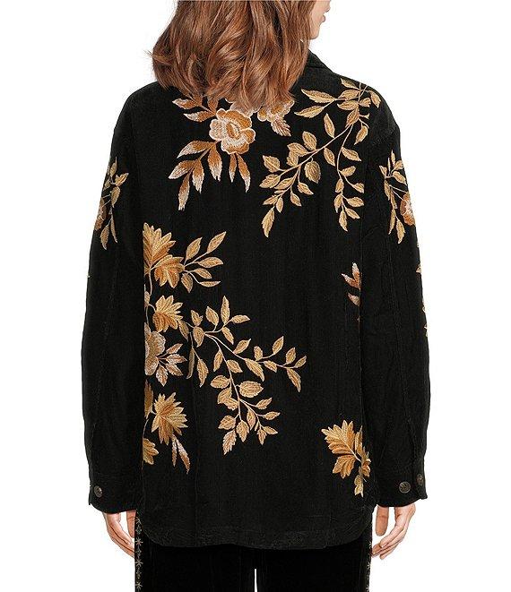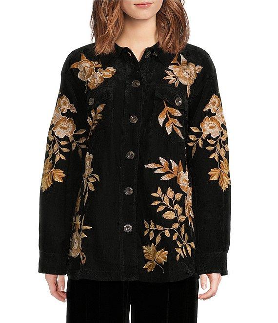 JOHNNY WAS Floral Embroidered Corduroy Point Collar Long Sleeve Shirt Jacket