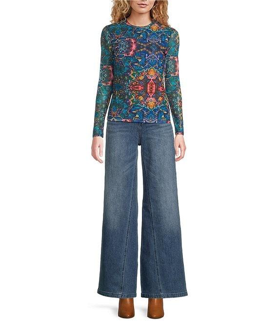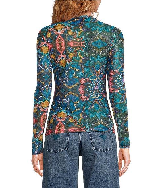 JOHNNY WAS Natalie Printed Mesh Crew Neck Long Sleeve Tee