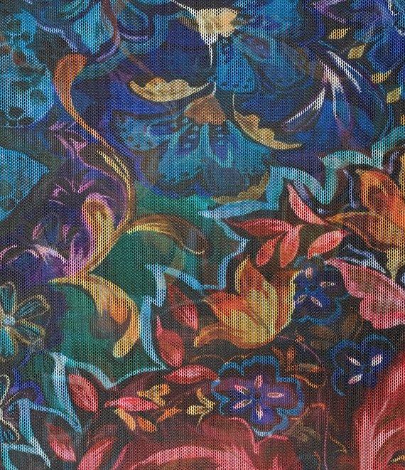 From JOHNNY WAS, this pant features: Printed mesh fabrication Crew neckline Long sleeves Straight hem Pullover construction Approx. 24.5" length Polyester/spandex Dry clean Imported.