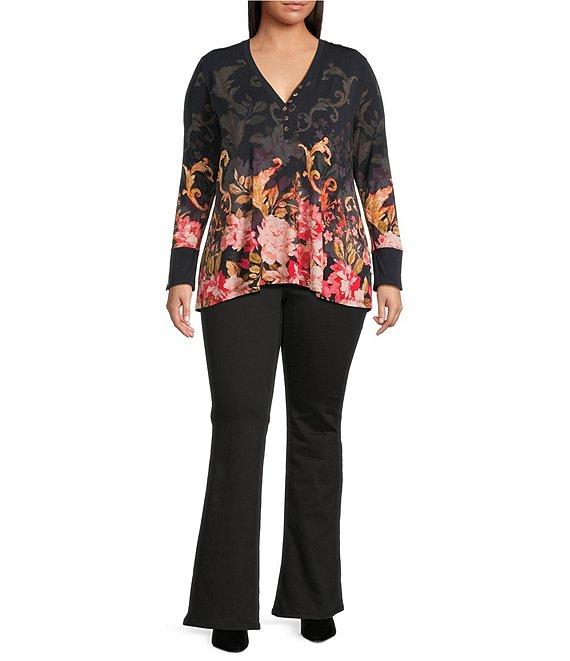 JOHNNY WAS Plus Size The Janie Favorited Printed Bamboo Knit V-Neck Long Sleeve Henley Tee