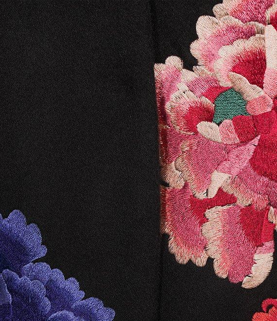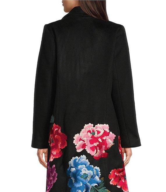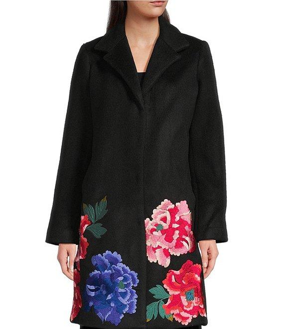 JOHNNY WAS Sondra Floral Embroidered Wool Notch Lapel Long Sleeve Coat