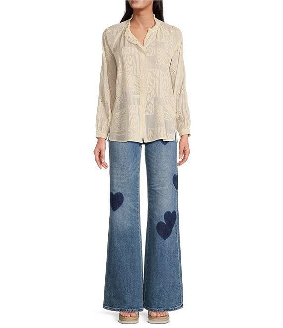 From JOHNNY WAS, this jean features: Stretch denim fabrication provides comfort and durability Belt loops on waistband 5-pocket styling Heart placement print Flare leg silhouette Front zip fly with button closure Approx. 33" inseam Cotton/T400®/Lycra® Machine wash/tumble dry Imported.