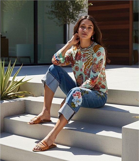 JOHNNY WAS The Janie Favorite Endora Scarf Print Crew Neck Long Flare Sleeve Tee