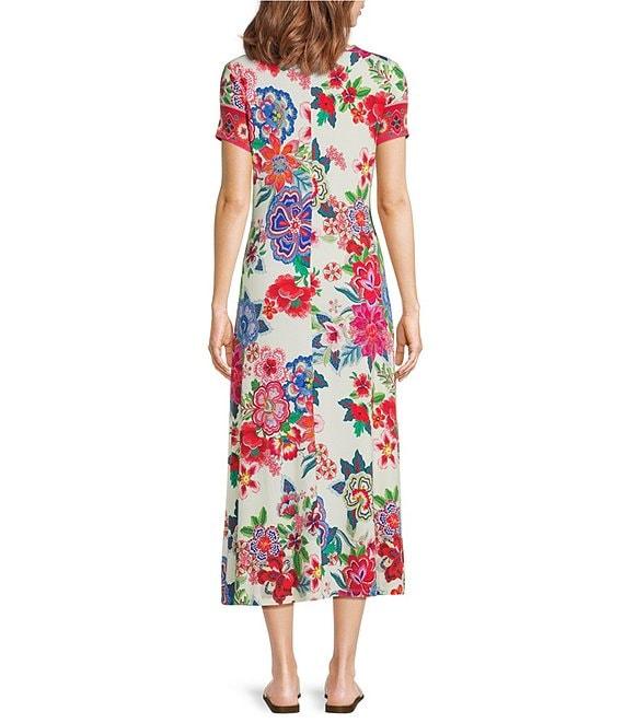 JOHNNY WAS The Janie Favorite Kallie Floral Scarf Print Knit Crew Neck Cap Sleeve Midi Dress