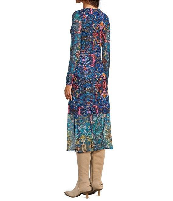 JOHNNY WAS Tulus Kaleidoscope Print Mesh Knit Crew Neck Long Sleeve Midi Dress