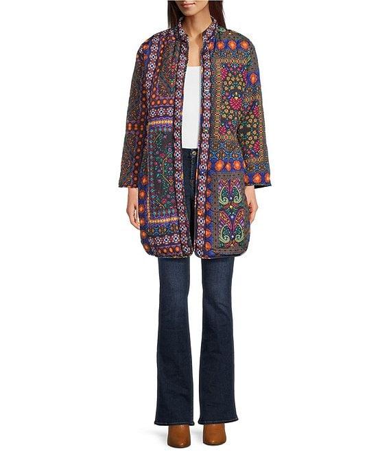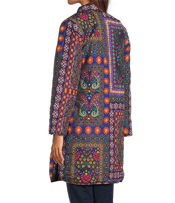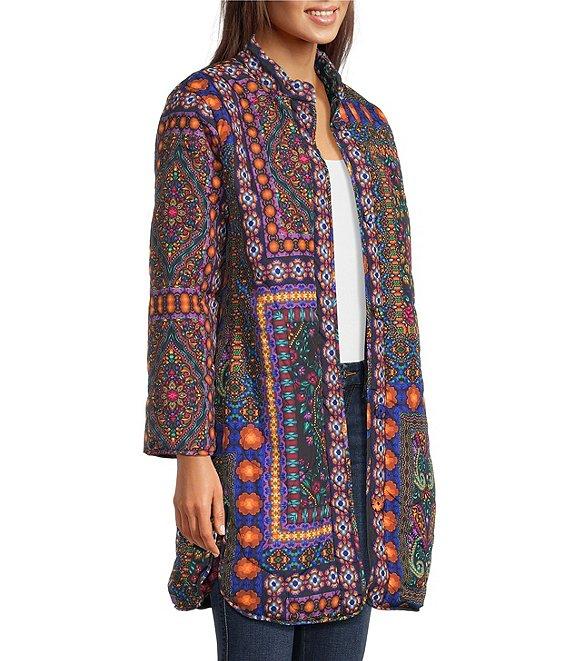 JOHNNY WAS Vivi Ornate Print Open Front Long Sleeve Puffer Jacket