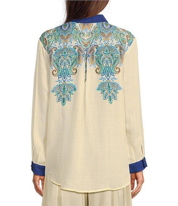 JOHNNY WAS Woven Printed Pleat Back Oversized Shirt