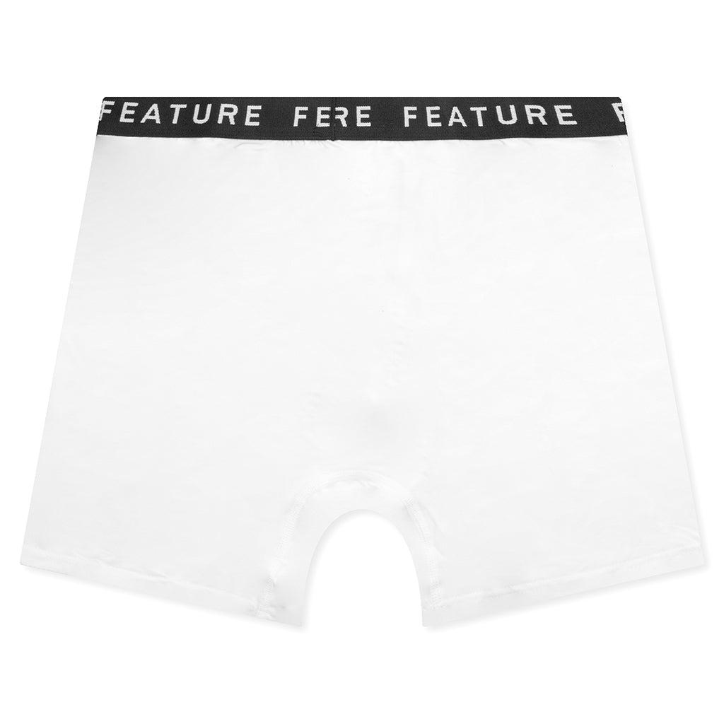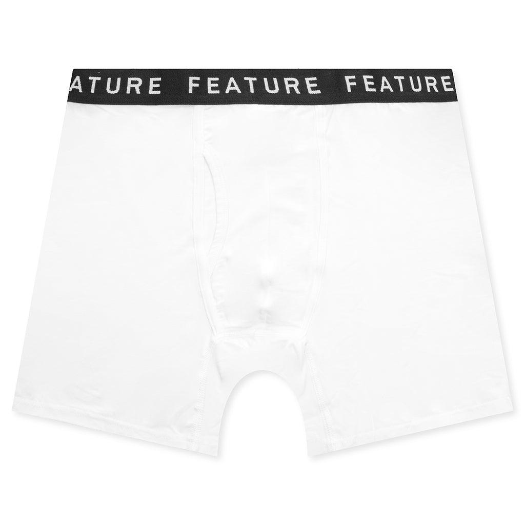 The Johnson Boxer Brief Single Pack in White is crafted from a soft blend of modal and elastane, providing stretch and comfort. Designed with a woven FEATURE-branded elastic waistband and a functioning fly, these briefs offer both style and practicality. Additional details include a gusset for enhanced fit and support. ALL SALES ARE FINAL. 90% Modal, 10% Elastane Exposed elastic waistband Woven FEATURE branded waistband Functioning fly Gusset Style No: F081524X01-WHT