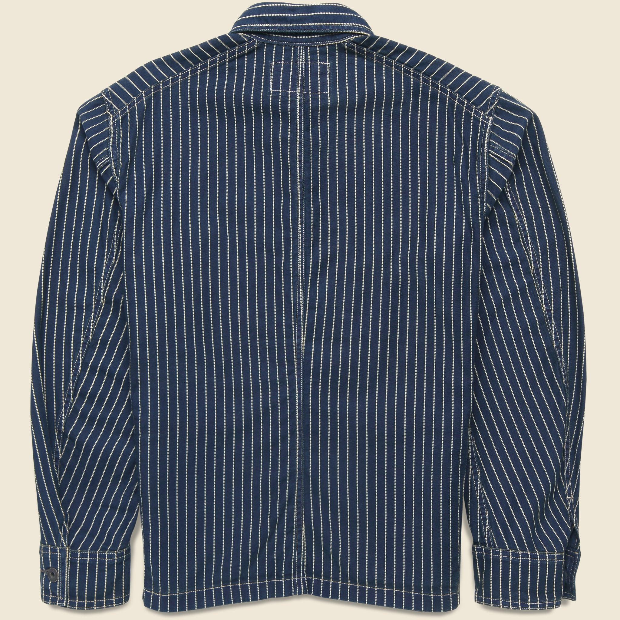 The Johnston Engineer Jacket from Double RL is made with lightweight cotton from Japan that’s been dyed with true indigo and discharge-printed with a late 1800s-inspired dot-stripe pattern for a vintage-inspired look. It’s tailored with a perfectly relaxed fit that runs true to size and finished with classic workwear details like four front patch pockets, a cutaway front hem, and has been Sanforized to minimize shrinkage.