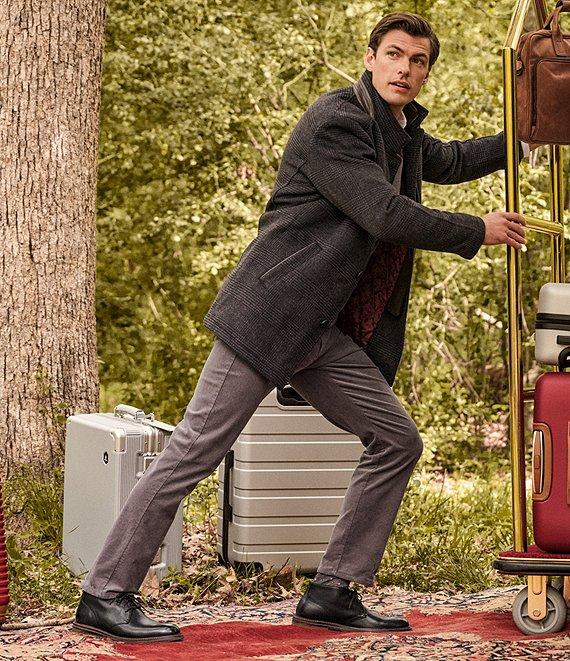 From Johnston & Murphy, this coat features: Plush, medium-weight blend Stand collar Long sleeves Button-front closure Cozy, removable, faux-suede zip bib Zippered chest pocket Front welt pockets Faux-leather trim Quilted lining 32 1/2" length Polyester/wool/acrylic/nylon/other fibers Dry clean only Imported.