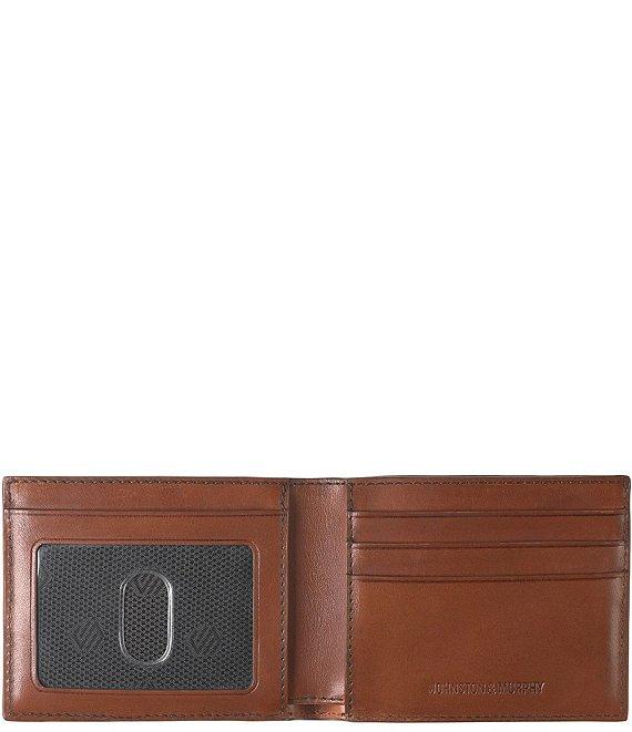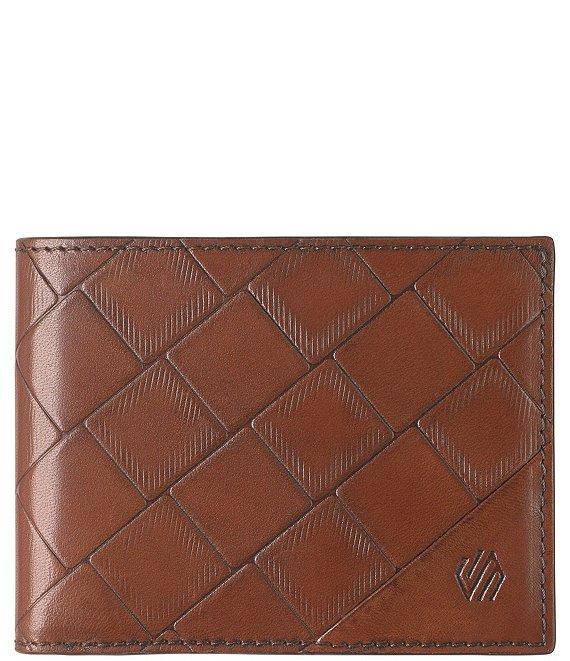From Johnston & Murphy, the Mens Basketweave Weekender Case features:Classic silhouetteEmbossed leather, burnished and stained to create a woven look.Three card slots.Currency pocket.Thumb-slide ID window.RFID blocking shield to protect personal dataBody- Genuine leather; Lined- 100% polyester.Lined - 100% PolyesterApprox. 4.25" L x 3.25" HImported.