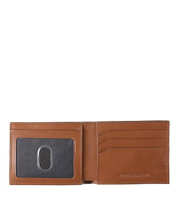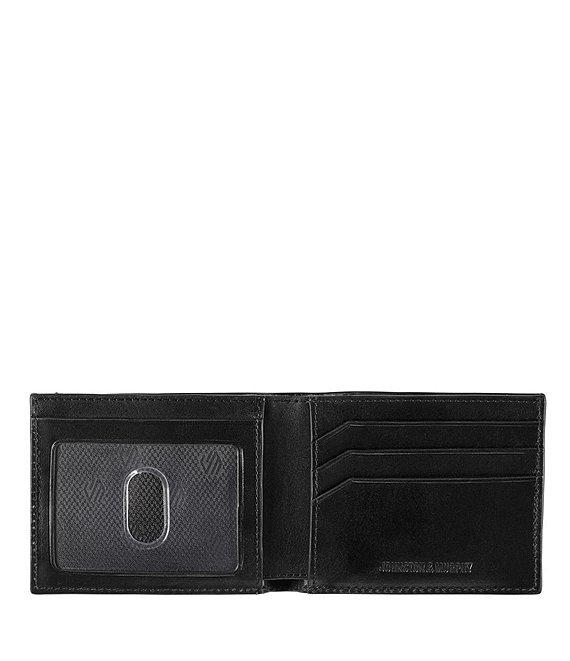 From Johnston & Murphy, the Hudson Billfold Wallet features: Full grain leather upper A slim profile An elegant leather dress wallet gets a little extra personality from its diagonal scored texture 3 card slots Thumb-slide ID window currency pocket RFID blocking shields sensitive data 10.5 x 8.2 x 2.5cm Imported