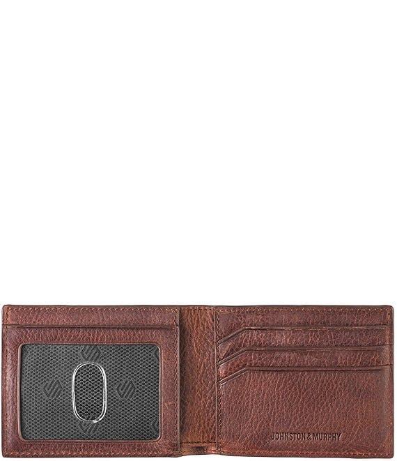 From Johnston & Murphy, the Men's Kingston Billfold features: A sleek and simple design in soft sherpa leather Classic billfold construction (3) x card slots Currency pocket Thumb-slide ID window RFID blocking shield to protect personal data Contrast stitching Lined Approx. 4.25" L x 3.25" H Imported.