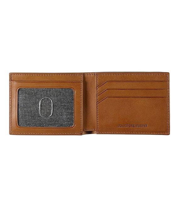 From Johnston & Murphy, the Men's Rhodes Billfold features: A sleek and simple design in our Rhodes leather that gets better with wear A classic billfold construction Currency pocket Three card slots Thumb-slide ID window RFID blocking shield to protect personal data Lined Approx. 4.25" L x 3.25" H Imported.