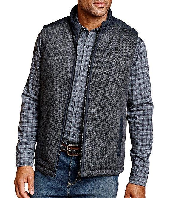 From Johnston & Murphy, this vest features: Quilted woven side reverses to menswear stretch knit Stand collar Sleeveless Zip-front closure 2 side pockets 2 distinct looks in 1 smart style Versatile mid-weight layer, loaded with options Polyester with recycled polyfill Dry clean Imported.