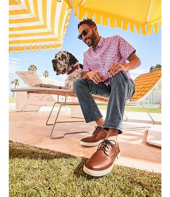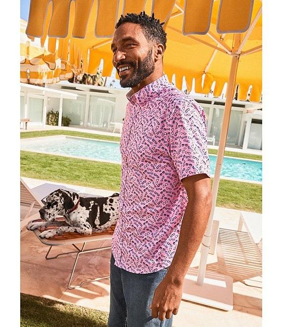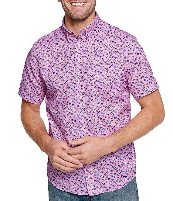 From Johnston & Murphy, this shirt features: Sunglasses print Button-down collar Short sleeves Contrast print inside collar, placket and cuffs Patch pocket on the left side of the chest Button-front closure Relaxed drape Cotton/viscose Machine wash/tumble dry Imported.
