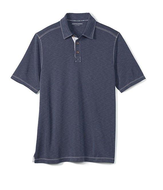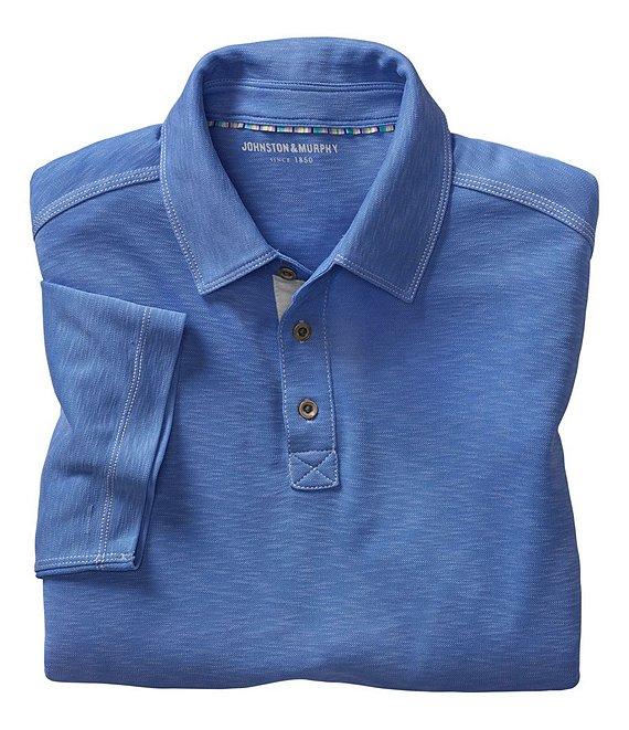 From Johnston & Murphy, this polo shirt features: Garment-washed fabric Self-fabric polo collar Short sleeves 3-button placket Contrast topstitching Straight hem Side slits Modal/polyester Machine wash/tumble dry Imported.