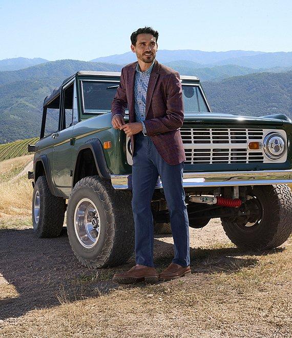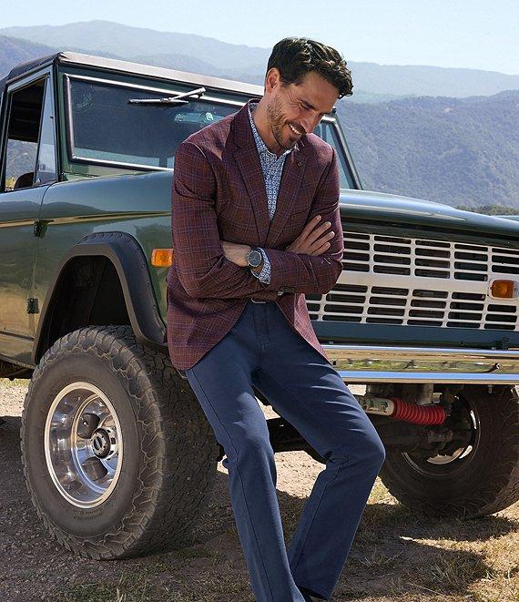 From Johnston & Murphy, this blazer features: Plaid pattern 2-button closure Long sleeves Welt chest pocket with tuck-away pocket square Flap front pockets Interior besom pockets with one ticket pocket Double back vents Fully lined Wool Dry clean Imported.