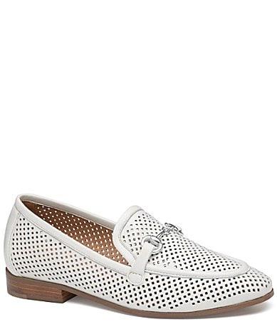 From Johnston & Murphy, the Womens Ali Leather Bit Buckle Detail Loafers feature:Soft perforated leather upperSlip-on stylingLeather liningCushioned ortholite comfort footbed with leather coveringCombination outsole with laser etch detail for tractionStacked wrapped heelApprox. 0.75 heel heightImported.