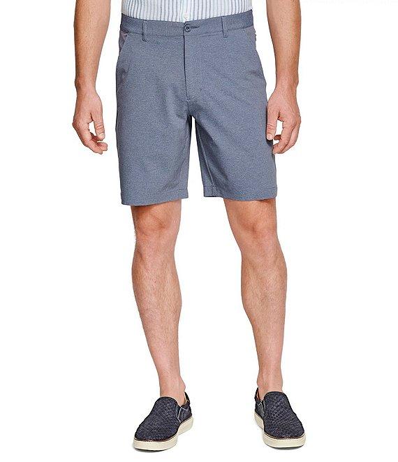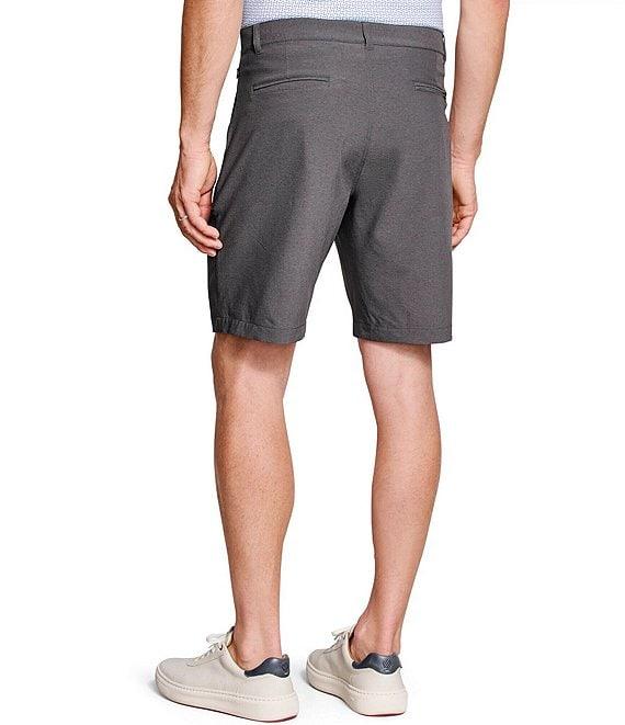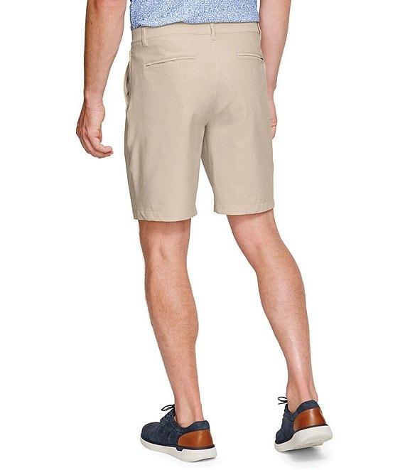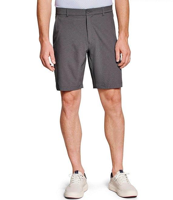 From Johnston & Murphy, these shorts feature: Classic fit Flat front Stretch waistband adapts to movement Belt loops Mesh-lined side pockets Back besom pockets 9" inseam Wrinkle resistant Anti-microbial Quick drying UPF 50 sun protection Breathable Moisture wicking Stretch material Polyester/spandex Machine wash/tumble dry Imported.