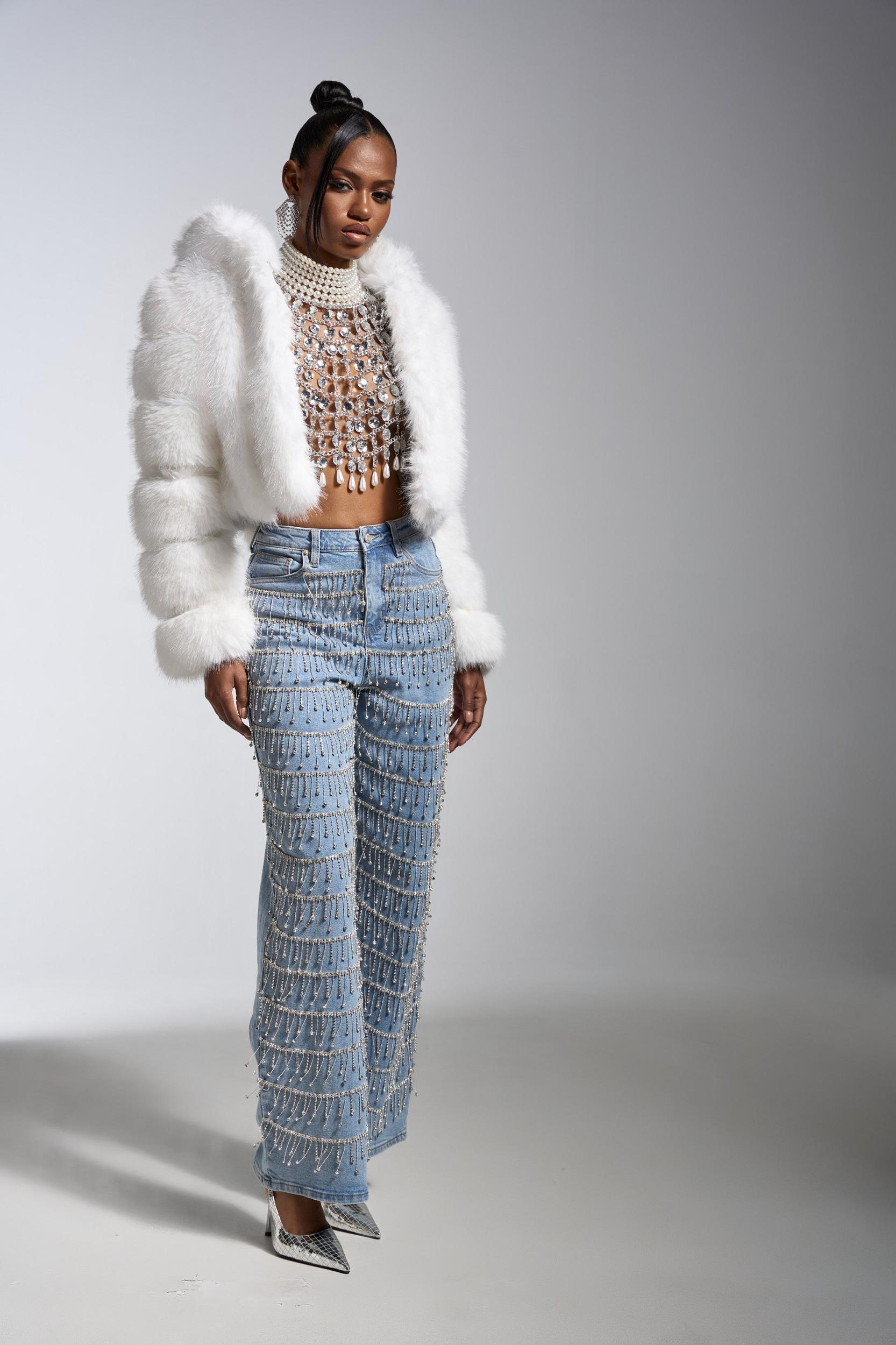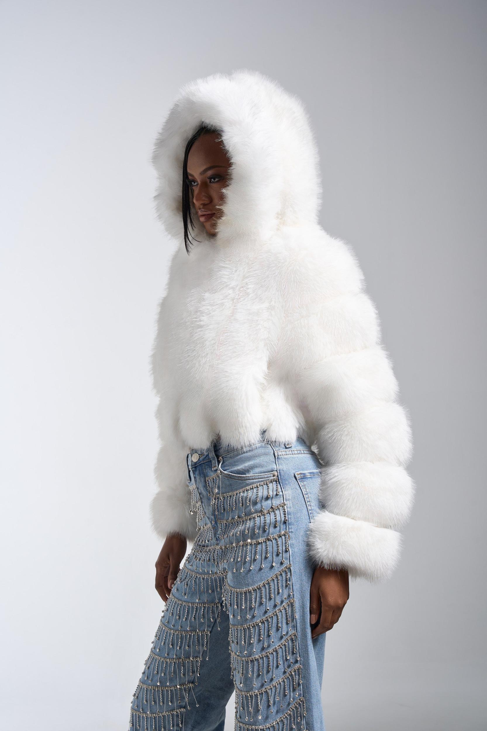 Embrace the chill in full glam with The AKIRA Label Jolene Faux Fur Coat In White. This plush statement piece is crafted from decadently soft faux fur and features horizontal panel construction for that modern puffer-inspired look, an oversized hood, long sleeves, concealed hook-and-eye front closures, and a sleek inner lining. Layer over knit sweaters and thermal tops, perfect for snowy nights out and street-style moments. - Fur: 100% Polyester, Fabric: 67% PU 20% Polyester 13% Viscose- Spot Clean Only- No Stretch- Imported (all measurements approximate from size small)- 16” Shoulder to Hem- 17” Shoulder to Shoulder- 24” Sleeves- Model is 5’9” and is wearing size smallProduct ID: 1064846 (all measurements approximate from size 1X)- 19” Shoulder to Hem- 19” Shoulder to Shoulder- 26” SleevesProduct ID: 1064850