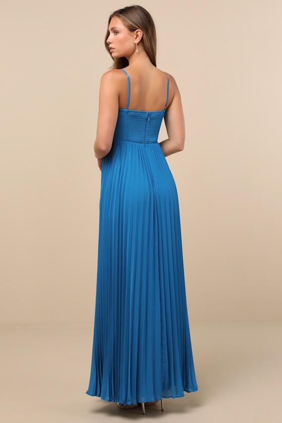 Jolette Blue Pleated Knot-Front Maxi Dress Product Image