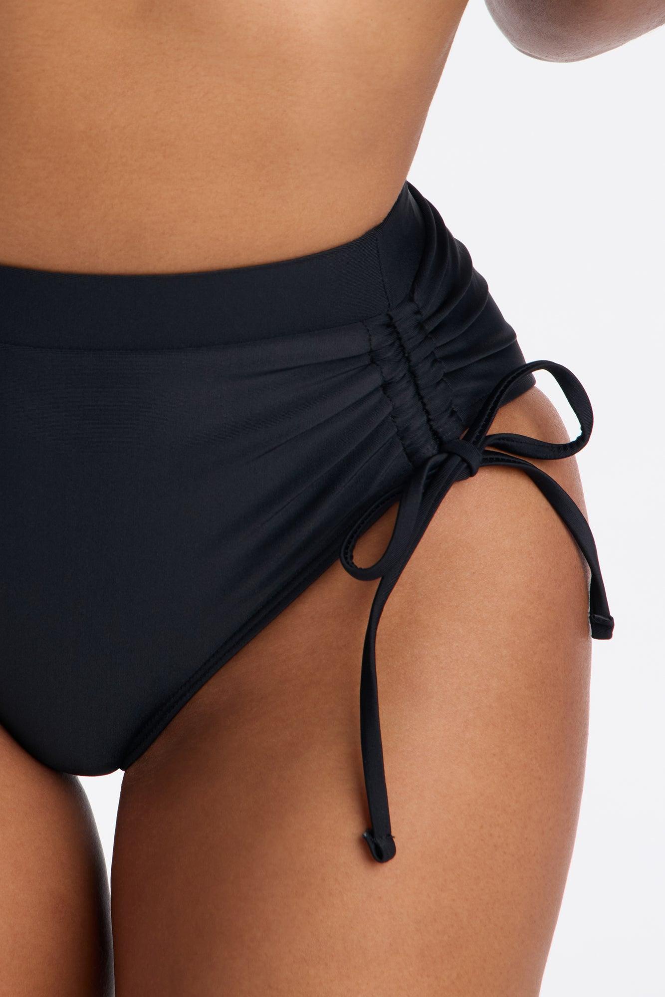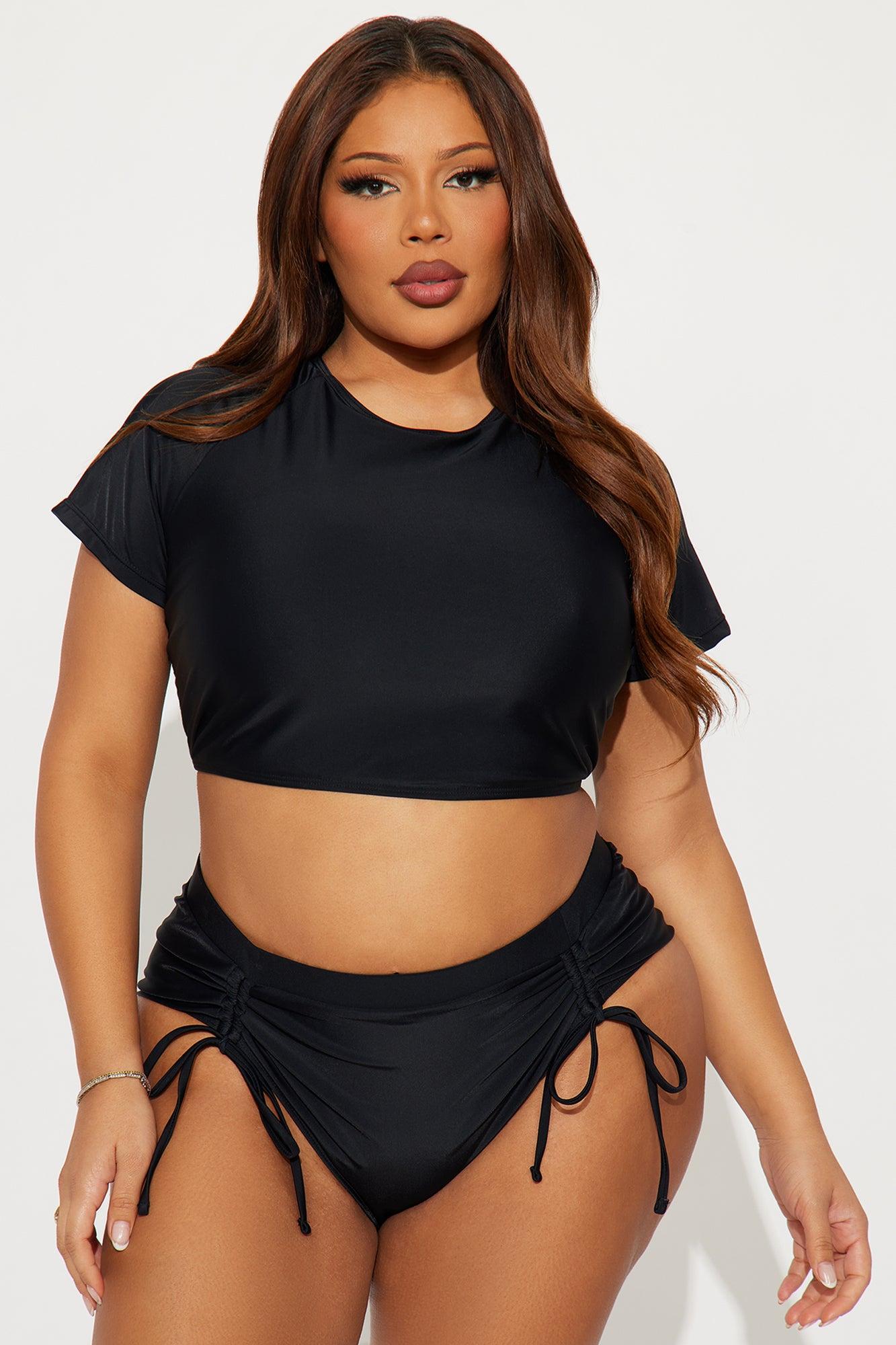 Available In Black And Orange. 2 Piece Bikini Crop Top Bikini Top, Removable Cups Cap Sleeves Crew Neck Adjustable Lace Up Back Crop Length High Leg Cut Bikini Bottom Adjustable Ruching Detail Cheeky Full Stretch Final Sale Self: 82% Nylon 18% Spandex Lining: 92% Polyester 8% Spandex Imported