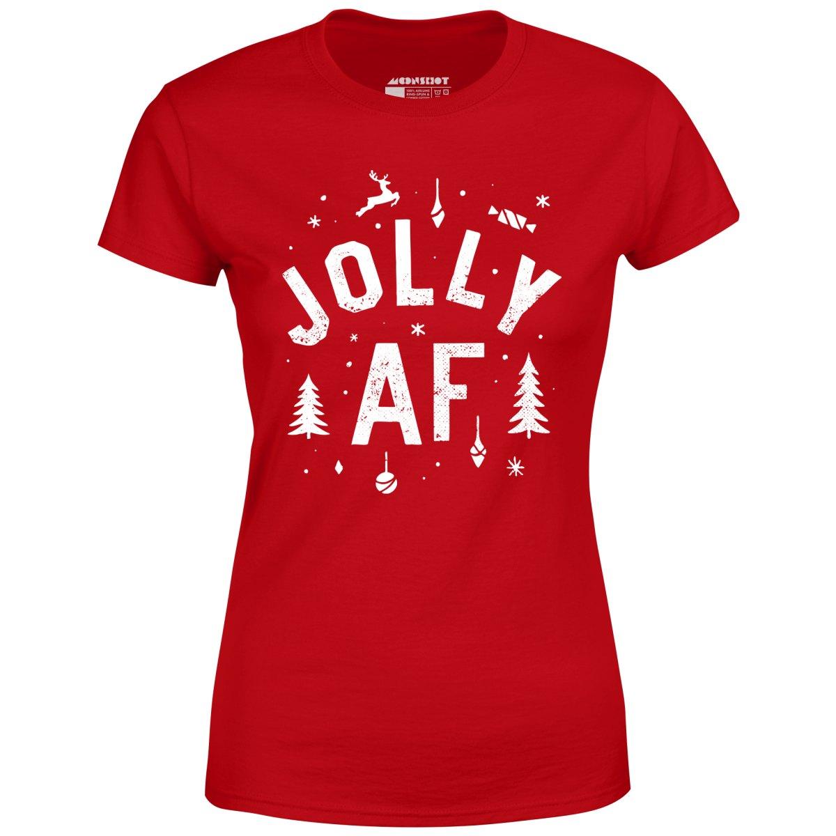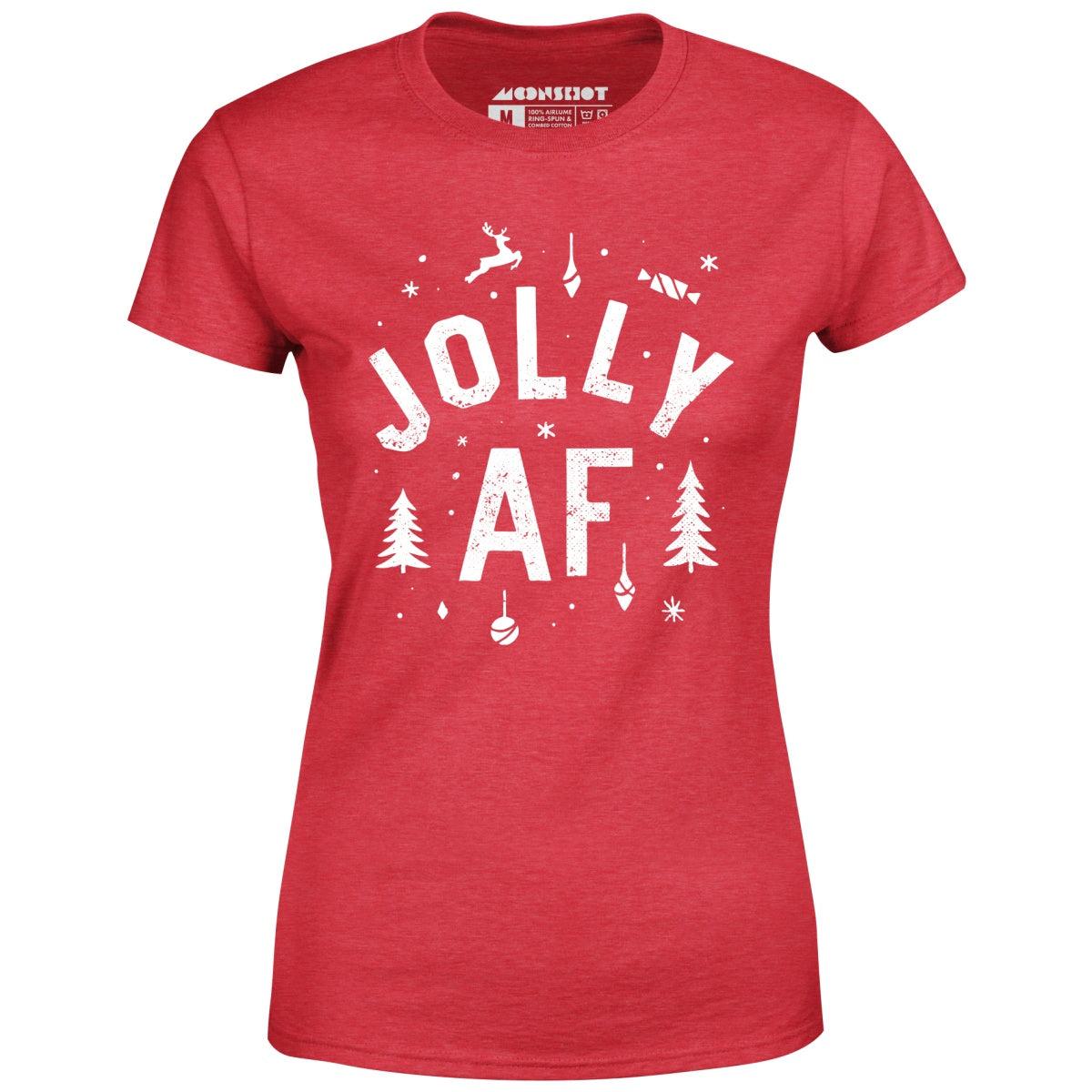 Here's a cheery holiday jolly AF Christmas design with lots of wintery Christmas-timey vibes going on for anyone who's feeling jolly AF this Christmas season. Printed on our super soft 100% ringspun & combed cotton women's T-Shirt. Or upgrade to our Luxury 52/48 cotton/poly vintage heather edition for an even softer classic look. We print & ship all of our high quality graphic tees in the USA.