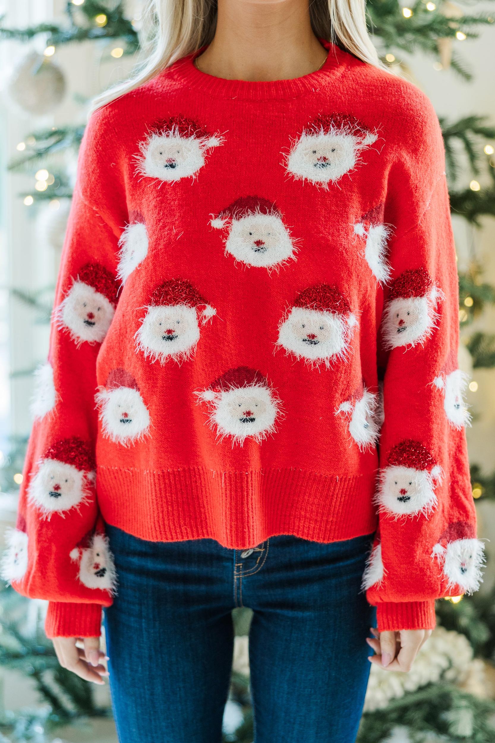 It's the most wonderful time of the year! We know you want to be as festive as possible all month long! Which is where this sweater comes in! This Santa printed sweater is just so cute! We love the glittery threads in Santa's hat and eyelash fabric around his hair and beard! Round neckline Long sleeves Santa print Metallic threading and eyelash fabric Generous stretch Baileigh is wearing the small.
