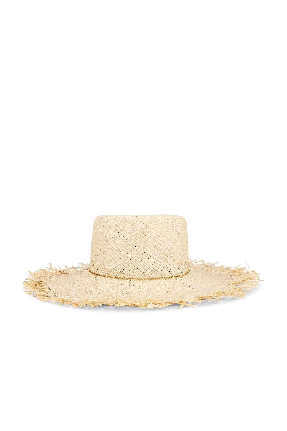 Woven raffia hat. Decorative gold-tone metal chain at crown. Spot clean only. Brim measures approx 5" in lengthOS measures approx 24" in circumference. This item is not available to ship to Australia. Made in China. Revolve Style No. EUGE-WA312. Manufacturer Style No. 21492-10325.