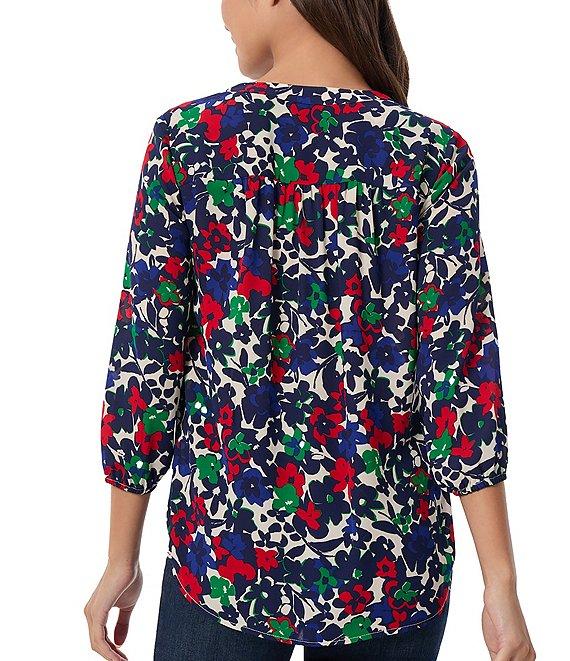 From Jones New York, this top features: Tunic silhouette Pleated v-neckline 3/4 sleeves with elasticized cuffs Pullover construction Approx. 27" length polyester Machine wash cold on gentle with like colors inside out; drip dry; press with cool iron if needed Dry clean if necessary Imported.