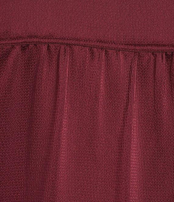 From Jones New York, this blouse features: Hammered satin fabrication V-neckline 3/4 puff sleeves Pullover construction Approx. 29.5" length Polyester/elastane Machine wash cold Imported.