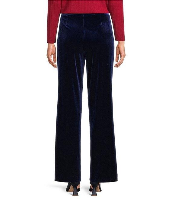 From Jones New York, these pants feature: Stretch velour fabrication Straight leg silhouette Elastic waistband Slash pockets Pull-on construction Approx. 31" length Polyester/elastane Machine wash cold Imported.