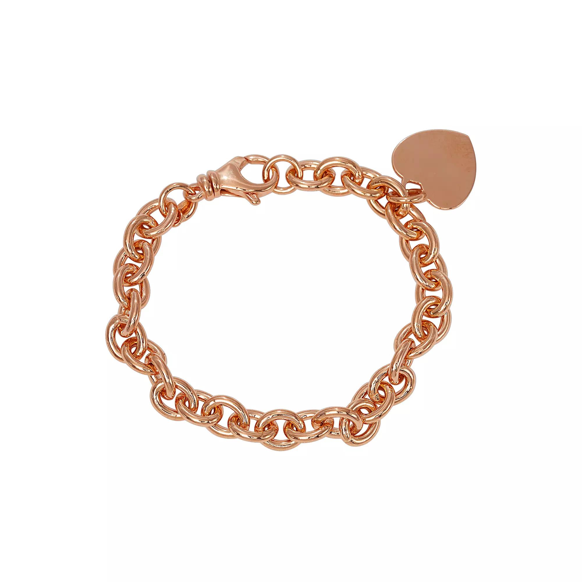 Oval links and a heart charm accent make this bracelet an enchanting gift.Bracelet Details:Length: 7.5 in.Clasp: lobster-clawMetal options: 14k gold over sterling silver, 14k rose gold over sterling silver Size: 7.5. Color: Pink. Gender: female. Age Group: adult.