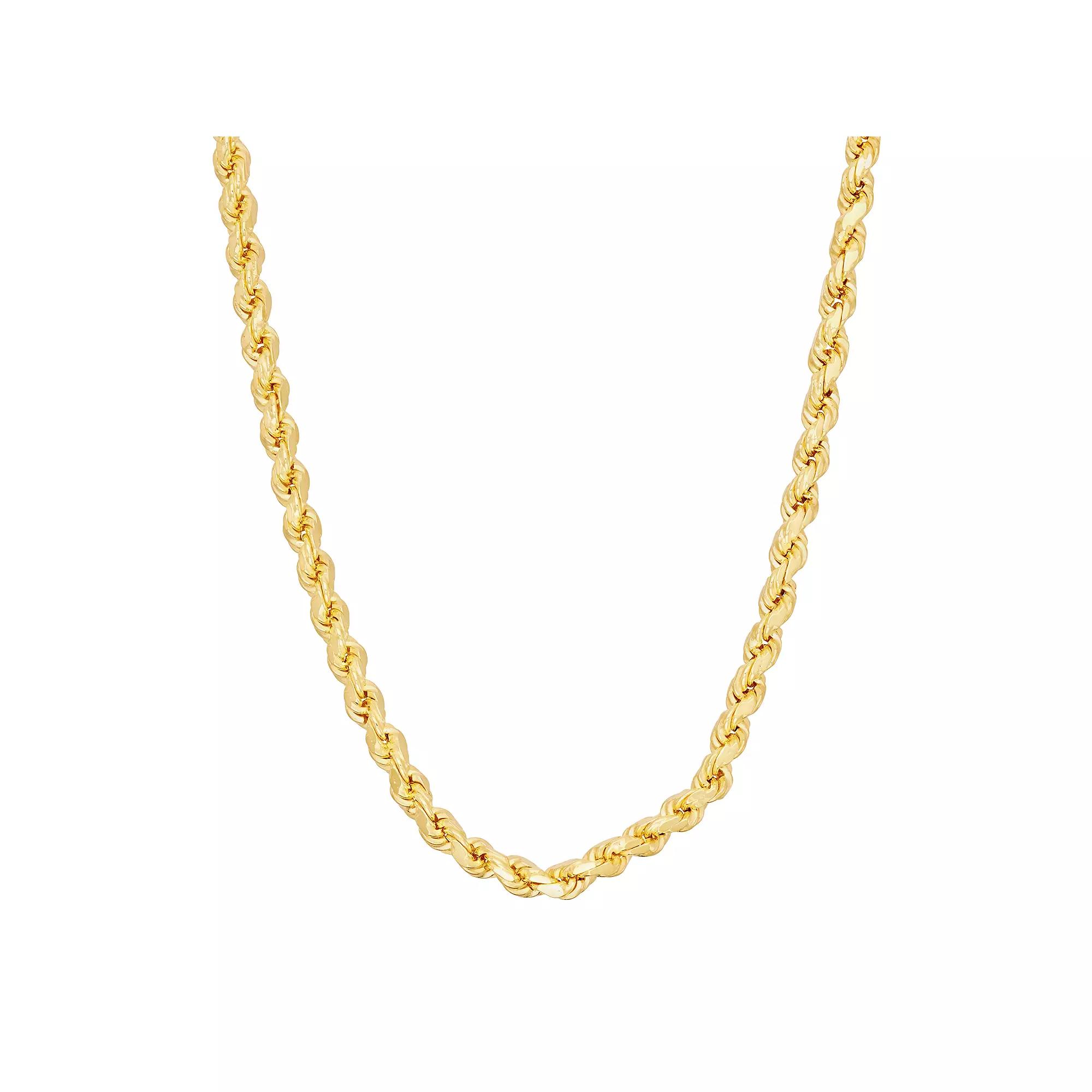 Accent any ensemble with this classically beautiful 14k gold over silver rope chain necklace.CHAIN DETAILS Type: rope Clasp: spring-ring Metal: sterling silver Plating: 14k gold Size: 30". Color: Yellow. Gender: female. Age Group: adult. Material: Gold Over Sterling.