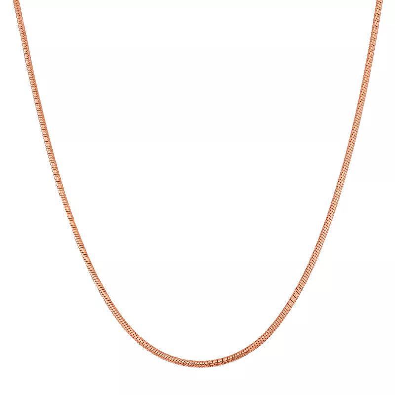 An adjustable length and modern design make this snake chain the perfect way to elevate your ensembleCHAIN DETAILSType: snakeLength: 15 in. with 7-in. extenderWidth: 1.8 mmWeight: 5 gramsClasp: lobster-clawMetal: 14k gold over sterling silver Size: 22. Color: Pink. Gender: female. Age Group: adult.