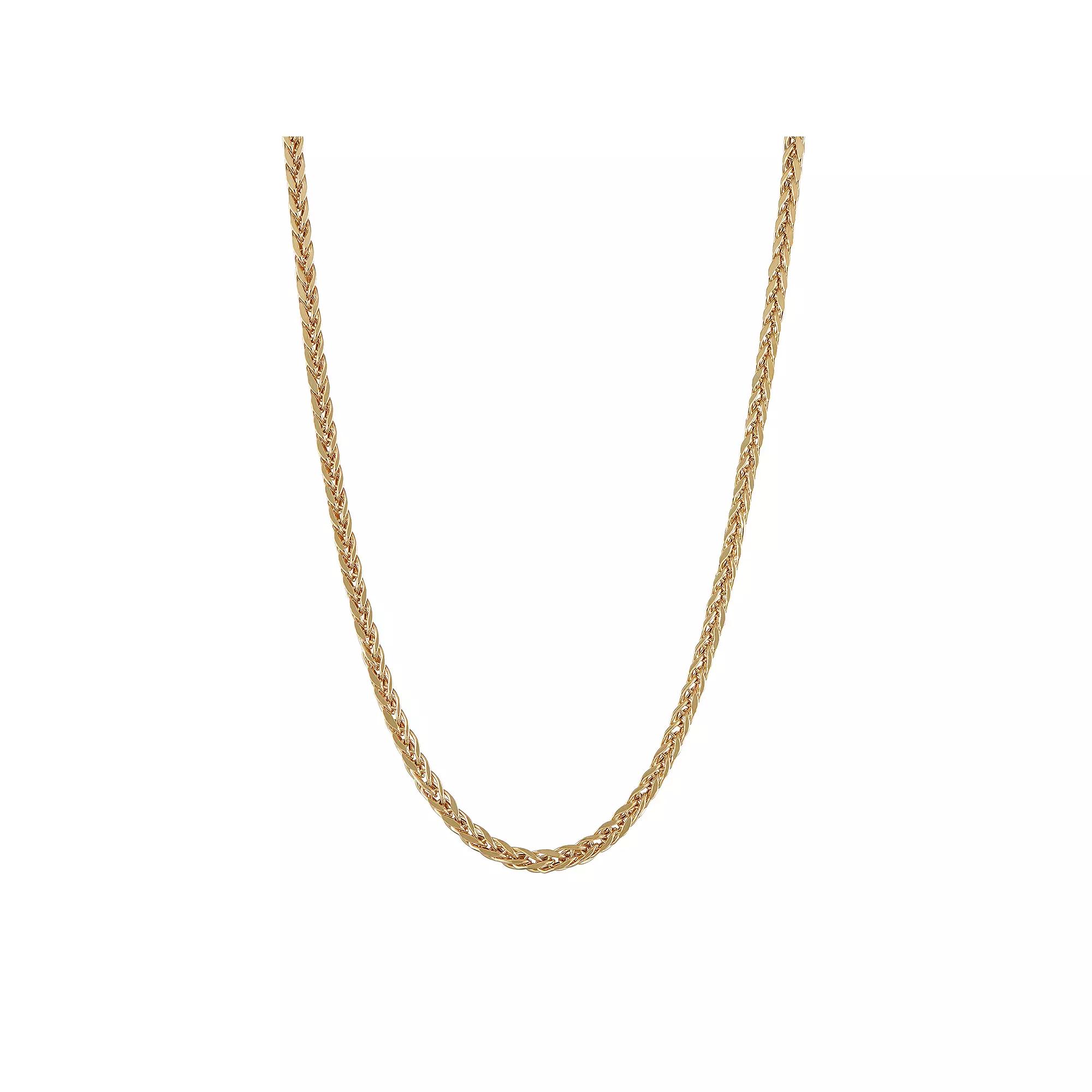 Expect compliments when youre wearing this bold wheat chain necklace. Expect compliments when youre wearing this bold wheat chain necklace. Click on this JEWELRY & WATCHES GUIDE to learn about fit, styles, materials and more! NECKLACE DETAILS Chain type: solid wheat Clasp: lobster-claw Metal: 14k goldFinish: polished Packaging: boxed Width: 2.5mmWeight: 18in.- 4.5 grams, 20in.- 4.95 grams, 24in.- 5.9 grams Size: 18. Color: Yellow. Gender: female. Age Group: adult.