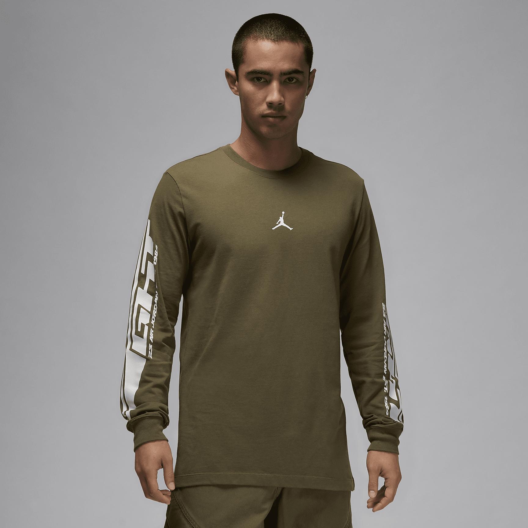 Midweight cotton and a traditional fit keep this long-sleeve tee soft and comfortable. What more could you want? [] Product Details:100% cotton. Machine wash. Imported. Style: FZ1973; Color: Medium Olive/Sail/Sail; Size: S; Gender: Male; Age Group: Adult | Jordan MVP Men's Long-Sleeve T-Shirt in Green, Size: Small | FZ1973-222