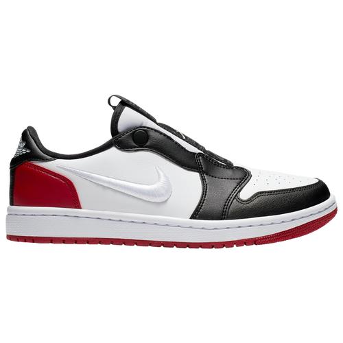 SLIP INTO GREATNESS. Slip on a legend with the Air Jordan 1 Retro Low Slip. Its laceless design has an easy snap-button closure, while a lightweight foam midsole with an Air-Sole unit gives you that all-day comfort on the go. Benefits: Laceless design has a button-snap tongue for easy on and off. Encapsulated Air-Sole unit in the heel enhances cushioning. Elongated tongue label is inspired by the original Air Jordan. Foam midsole gives you a cushioned ride. Solid rubber outsole provides durability and traction. Style: AV3918; Color: White/Gym Red/Black/White; Size: 7.5; Gender: Female; Age Group: Adult | Air Jordan 1 Retro Low Slip Women's Shoes in White, Size: 7.5 | AV3918-102