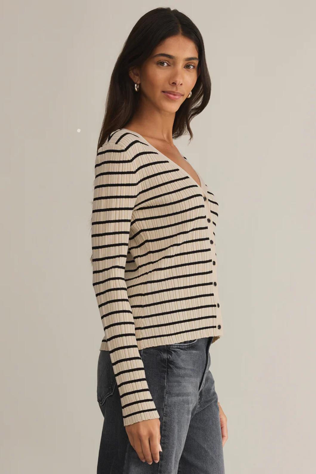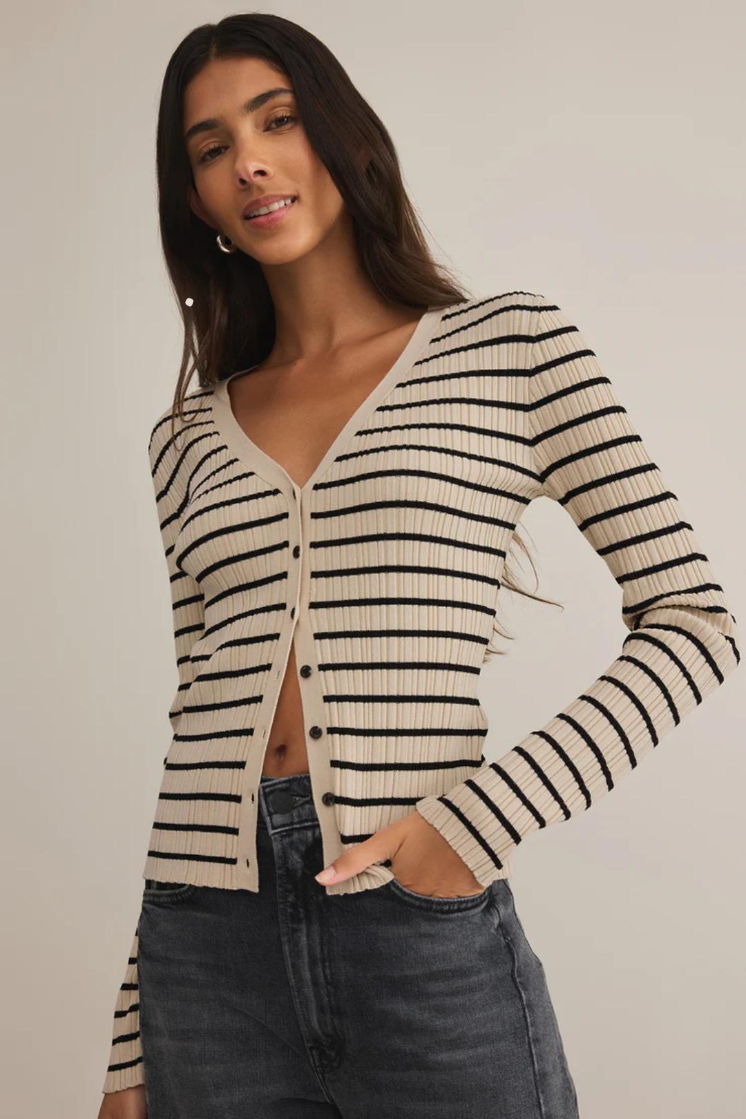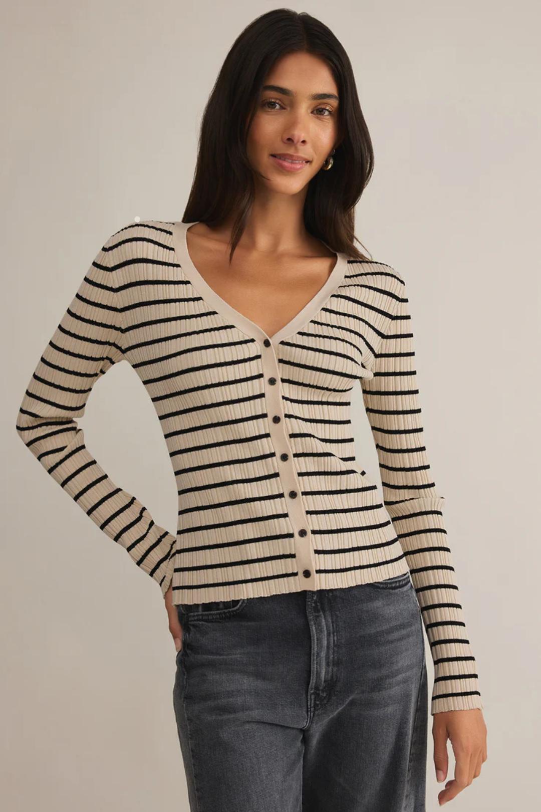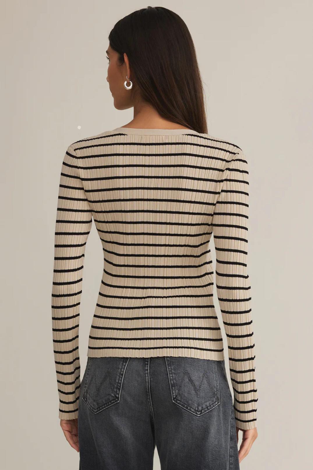 This Jordana Stripe Sweater from Z Supply is so chic and classy that you won't want to take it off. It's a fitted sweater, made from soft ribbed fabric, a v-neckline, and long sleeves. Perfect for more relaxed get-togethers like brunch, picnics, or coffee sessions.
