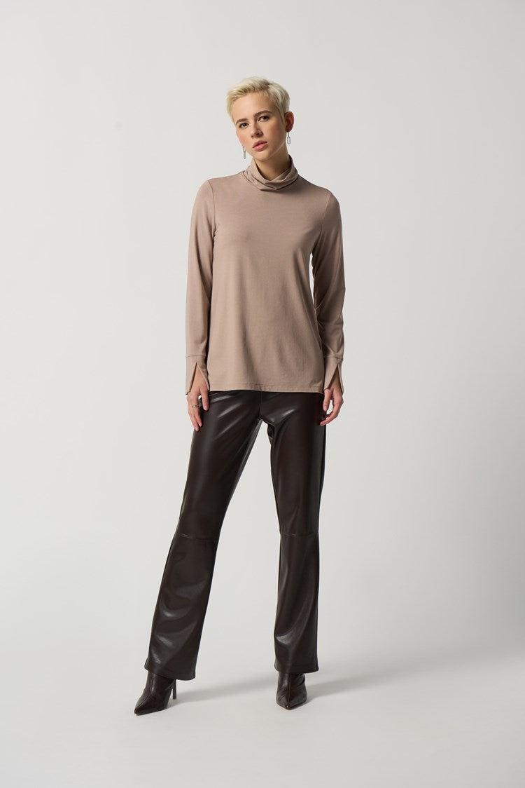 Casual simplicity meets high-end style in our gorgeous jersey knit turtleneck top. The luxurious fabric is soft to the touch and drapes beautifully, while the long sleeves and cozy turtleneck create a flattering silhouette. Cold water wash--do not dry clean.