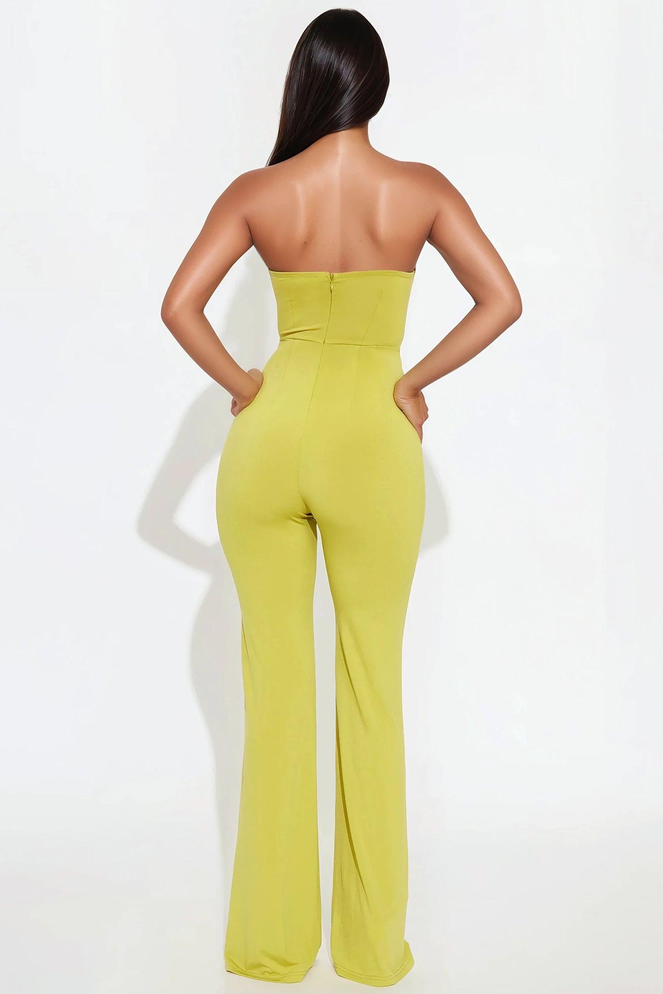 Josephine Strapless Wide Leg Jumpsuit - Chartreuse