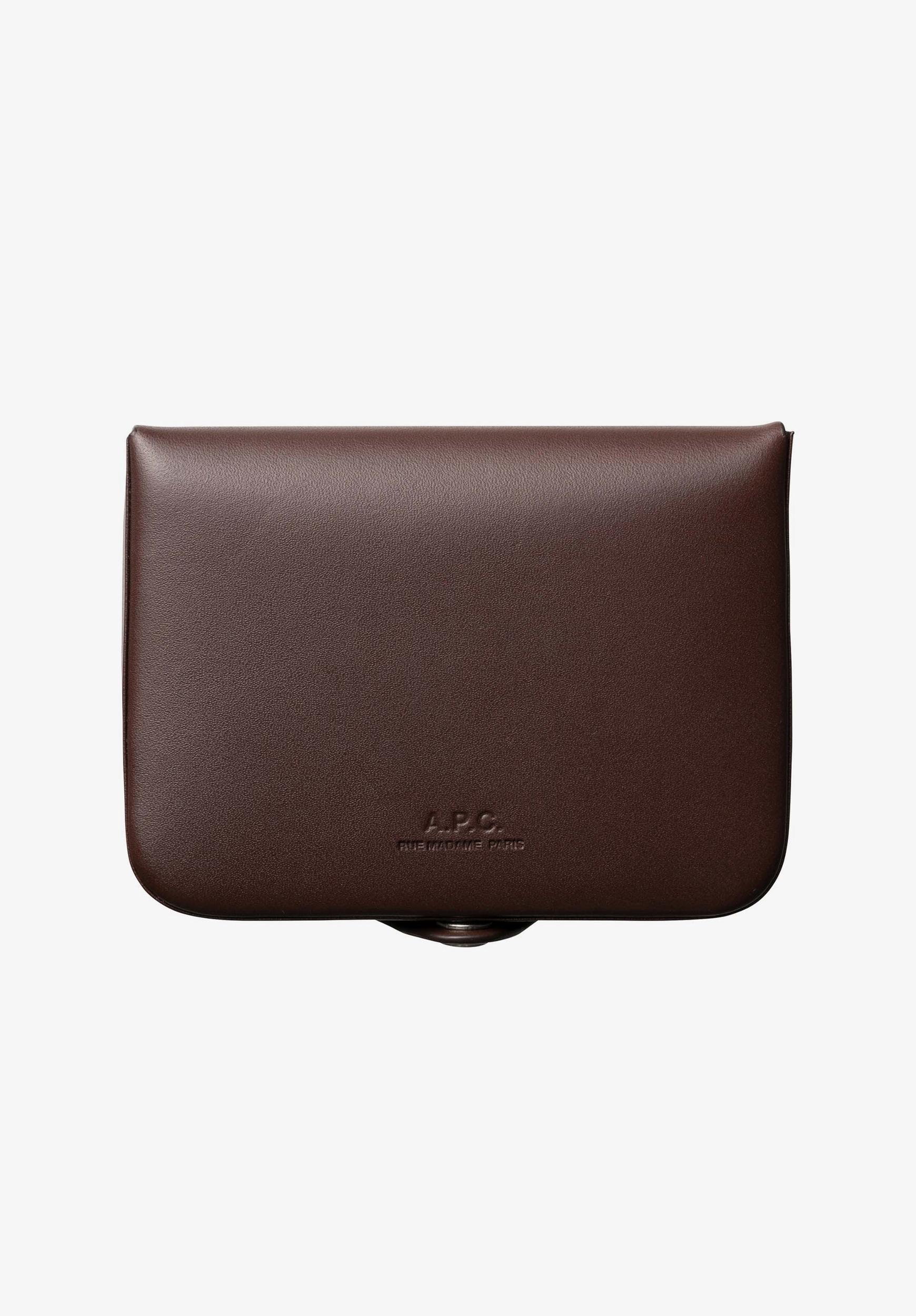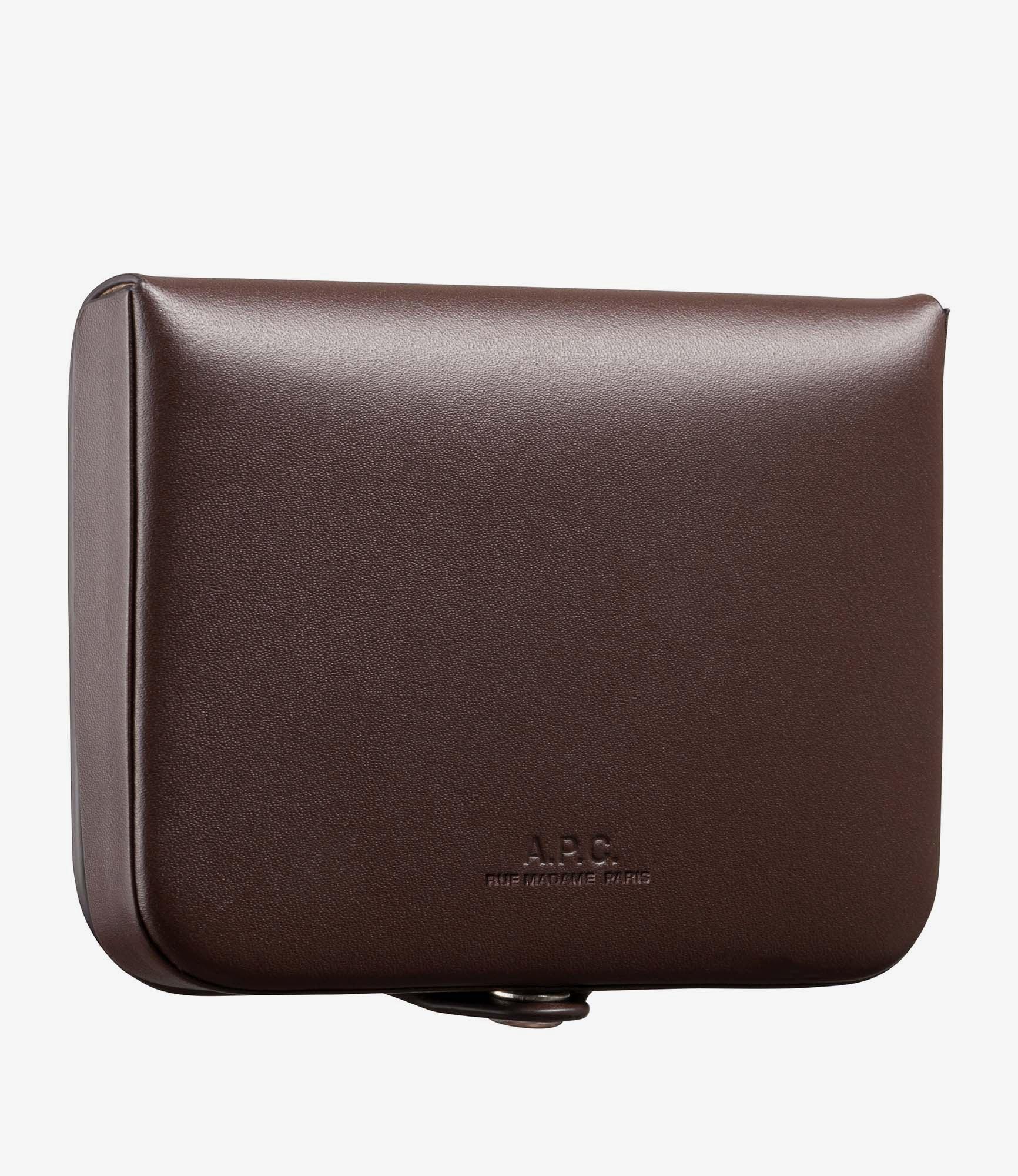 - Smooth vegetable-tanned leather.- Artisan molded leather.- Coin pocket.- Compartment with five card slots.- Rounded corners.- Snap flap closure.- Small silvertone embossed 'A.P.C. Rue Madame Paris' logo on front.
