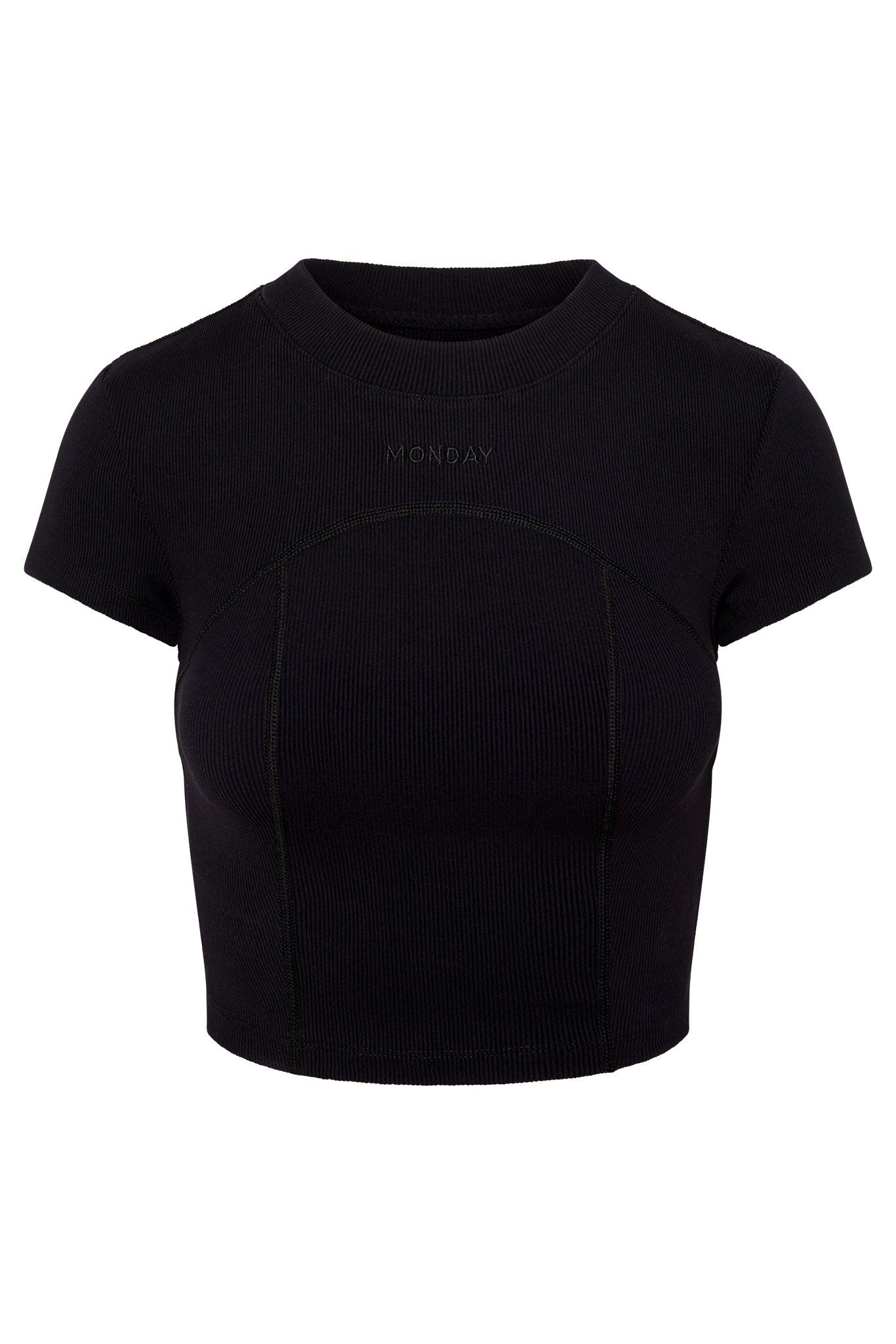 Basic Black Cotton Blend Roll Sleeve Crop Top