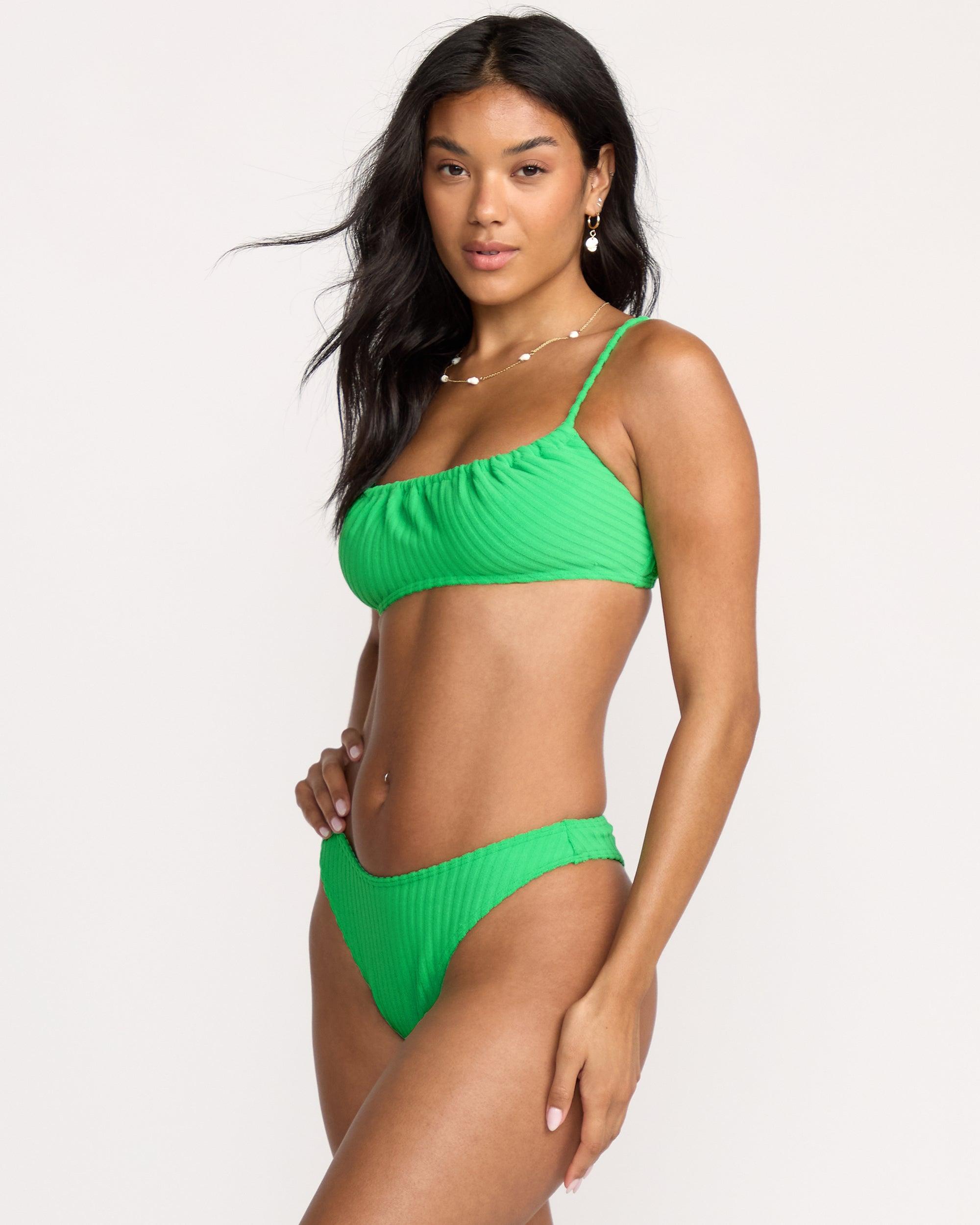 We sprint across hot sand, dive for the volleyball; our Mila Bralette Bikini Top stays put with O-ring adjustable straps, center-back hook, and front shirring, while the partially recycled fabric flexes comfortably without bulky cups. Features 74% Recycled Polyester / 21% Polyester / 5% Elastane Mila bralette O rings and sliders for adjustable straps with center back hook for closure Shirring at center front No Cups Josie X Billabong silicone patch at wearers left back side seam