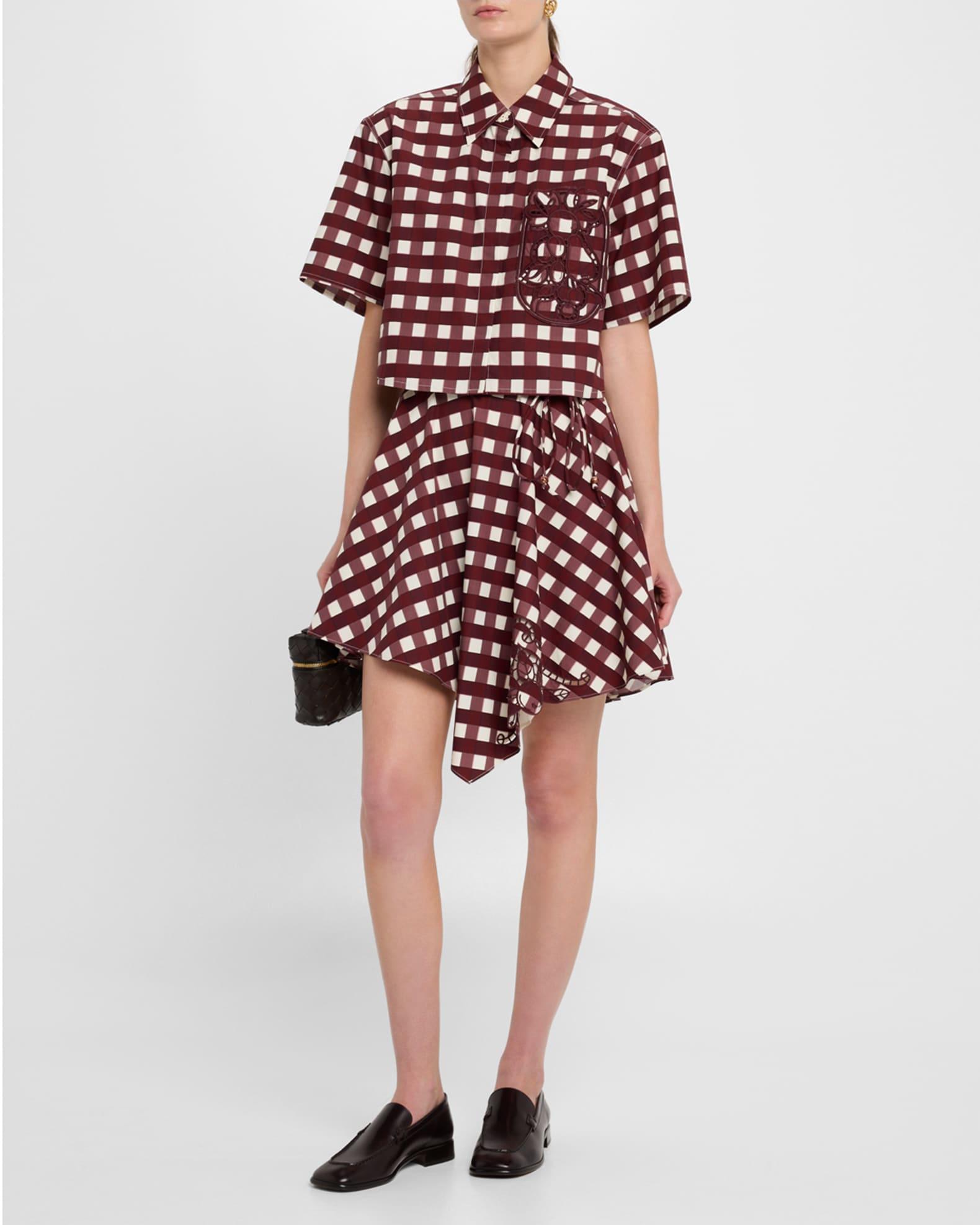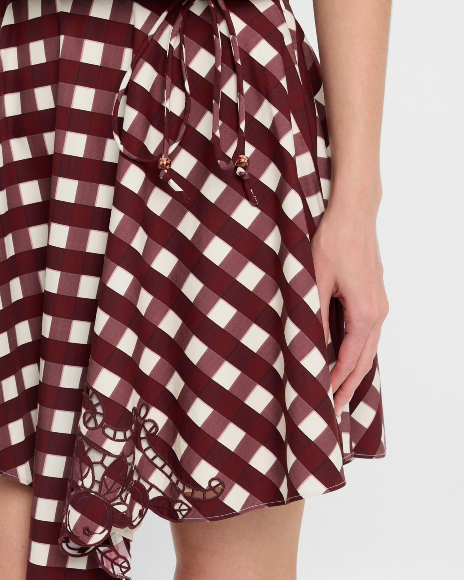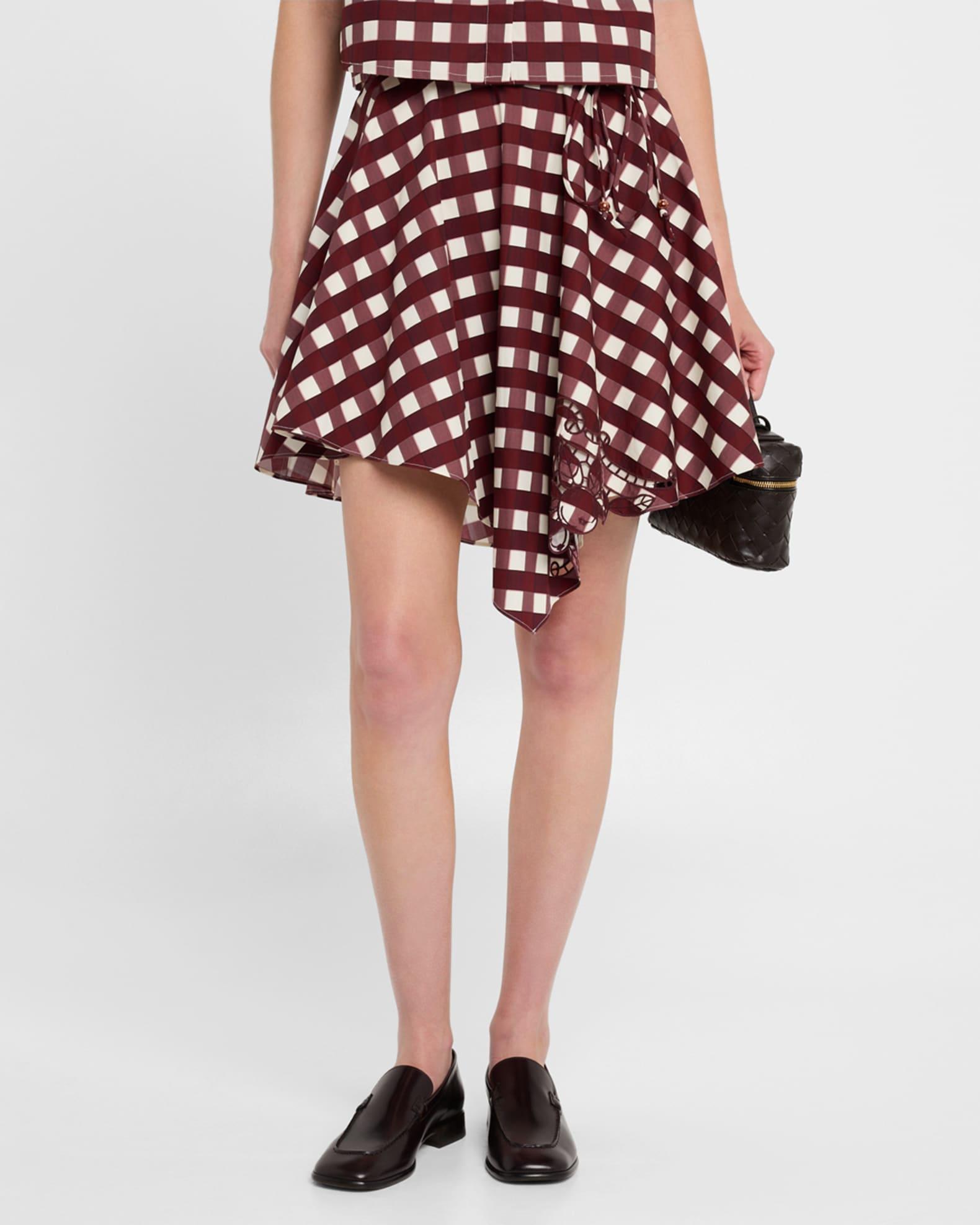 Featured in a classic picnic table plaid print, the Josita skirt by CLEA is finished with tonal embroidery and beaded trim High-rise drawstring waistband Hem falls above the knee A-line silhouette Hidden zip closure Cotton/polyester Lining: Cotton Dry clean Imported